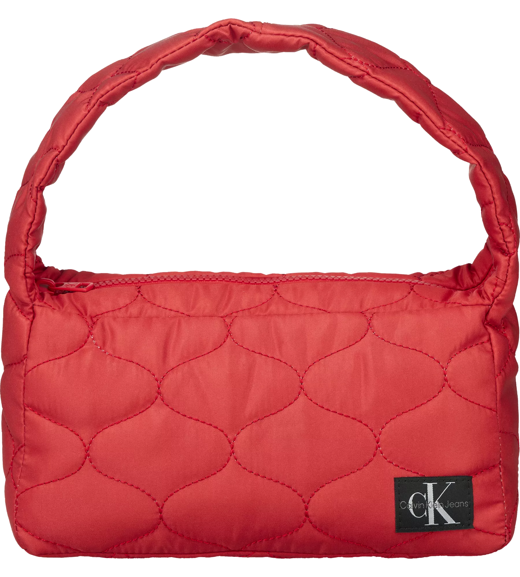 Borsa CALVIN KLEIN rossa in tesuto tecnico trapuntato, morbida e compatta e sul davanti un patch con CK