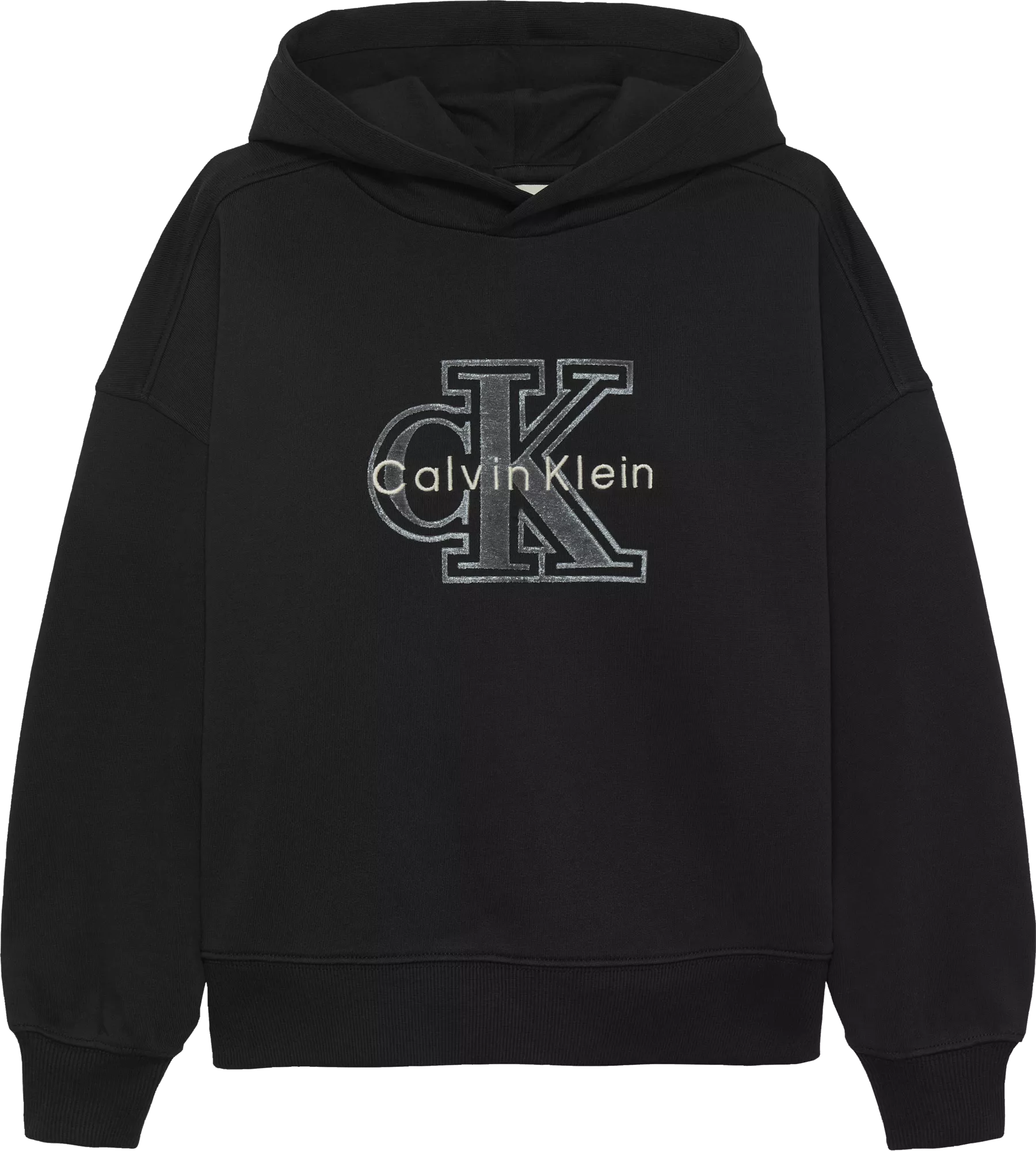 Felpa CALVIN KLEIN nera con cappuccio, manica lunga e logo