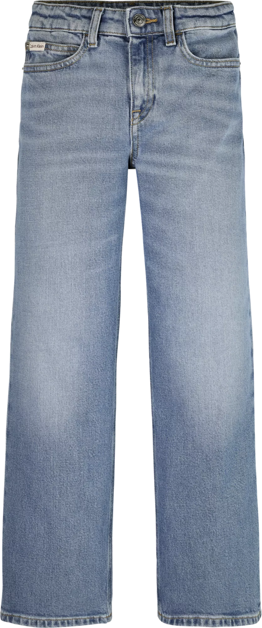 Jeans CALVIN KLEIN in denim blu Kids dal lavaggio chiaro e dallaspetto pulito, chiusura con bottone e zip, mentre le impunture in tono definiscono i profili con precisione. Sul retro, il logo CK jeans
