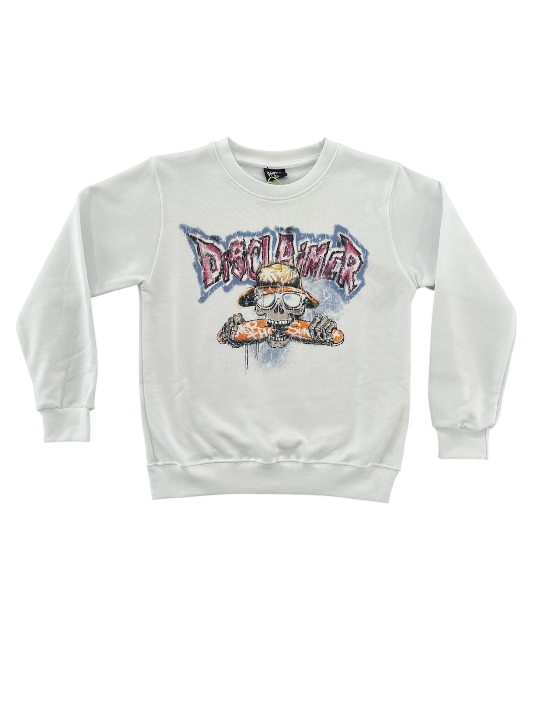 Felpa DISCLAIMER bianca a girocollo, in cotone, manica lunga e logo
