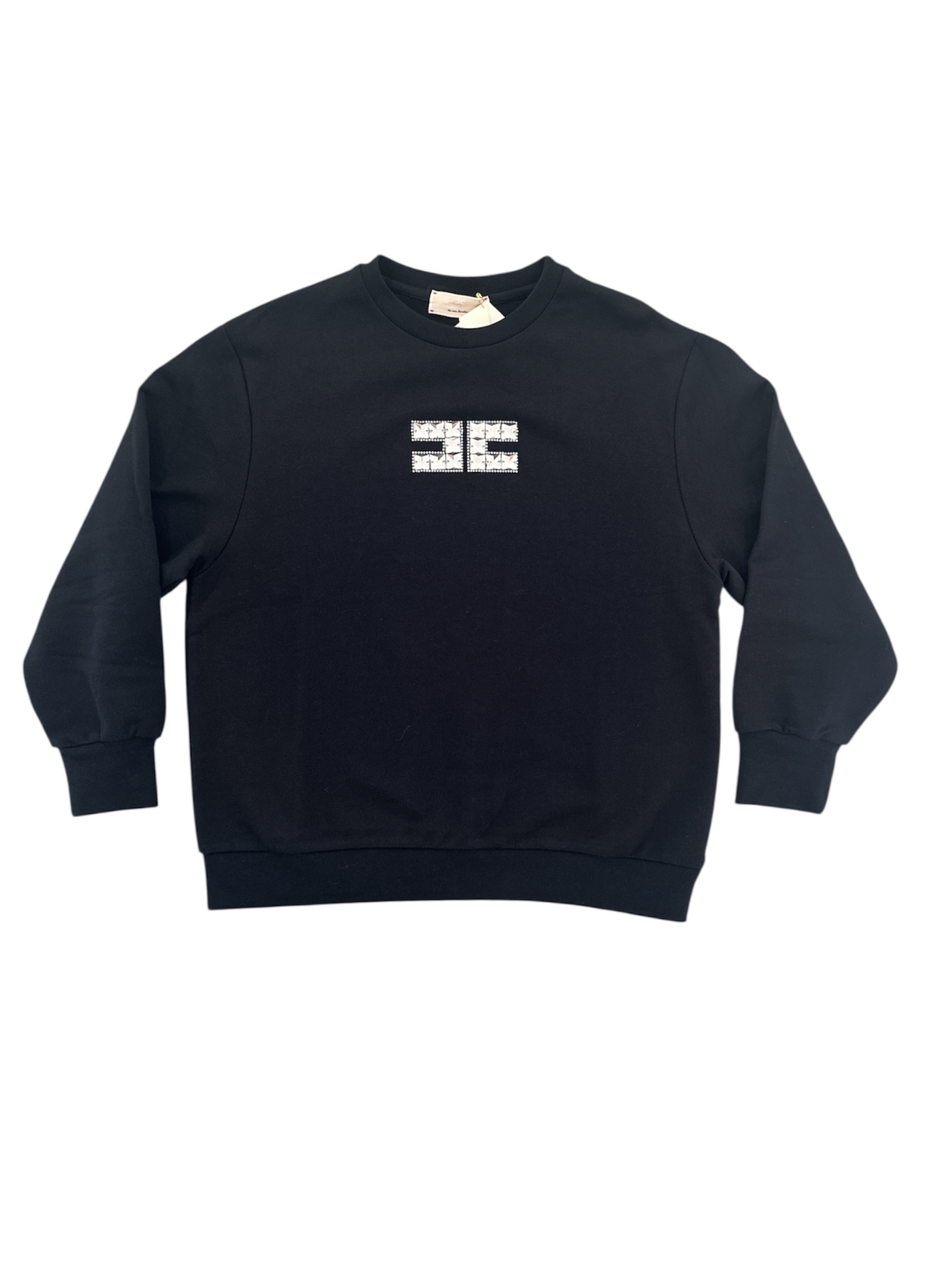 Felpa ELISABETTA FRANCHI nera a girocollo manica lunga e logo