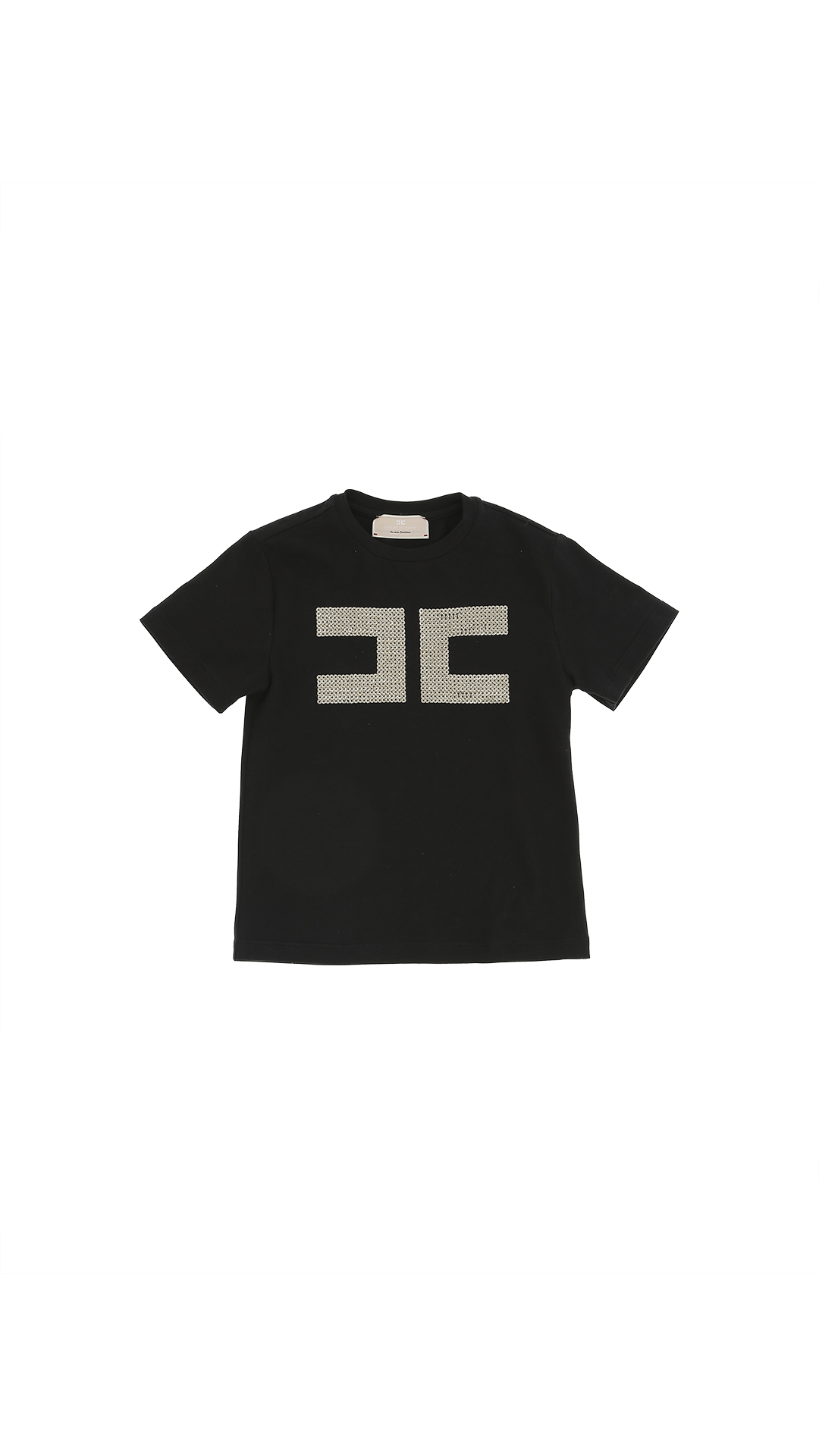 T-shirt ELISABETTA FRANCHI nera a maniche corte con logo oro sul davanti