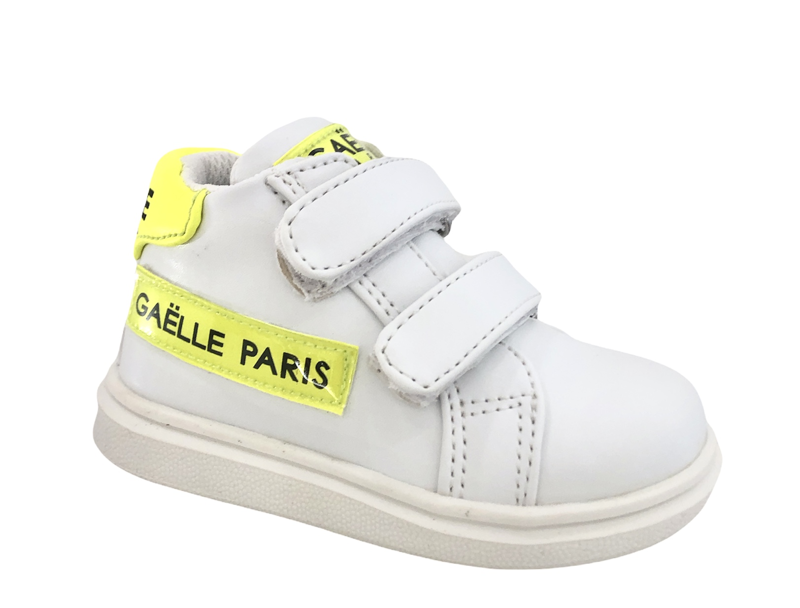 Sneakers GAELLE bianca in pelle con dettagli in giallo.