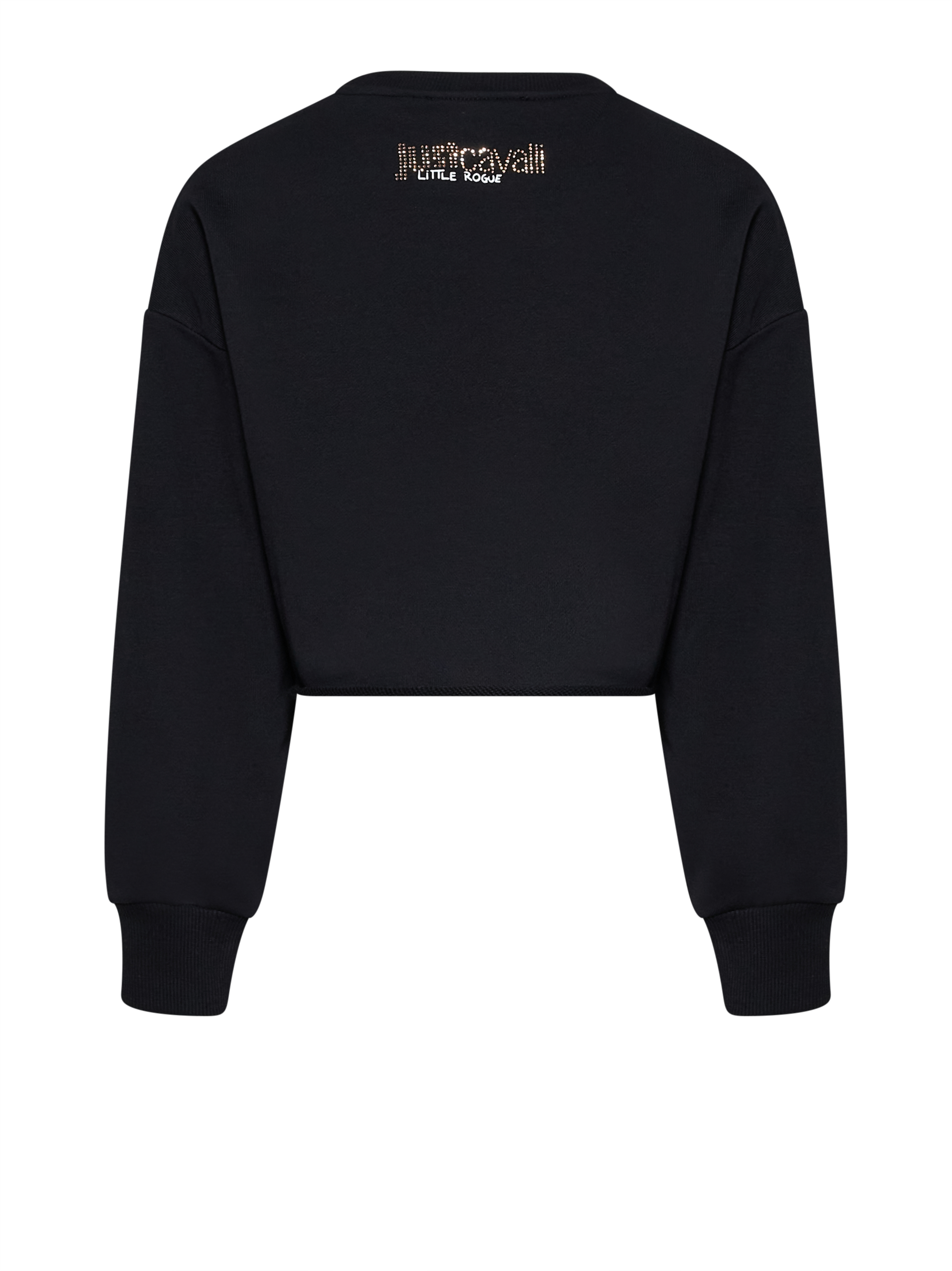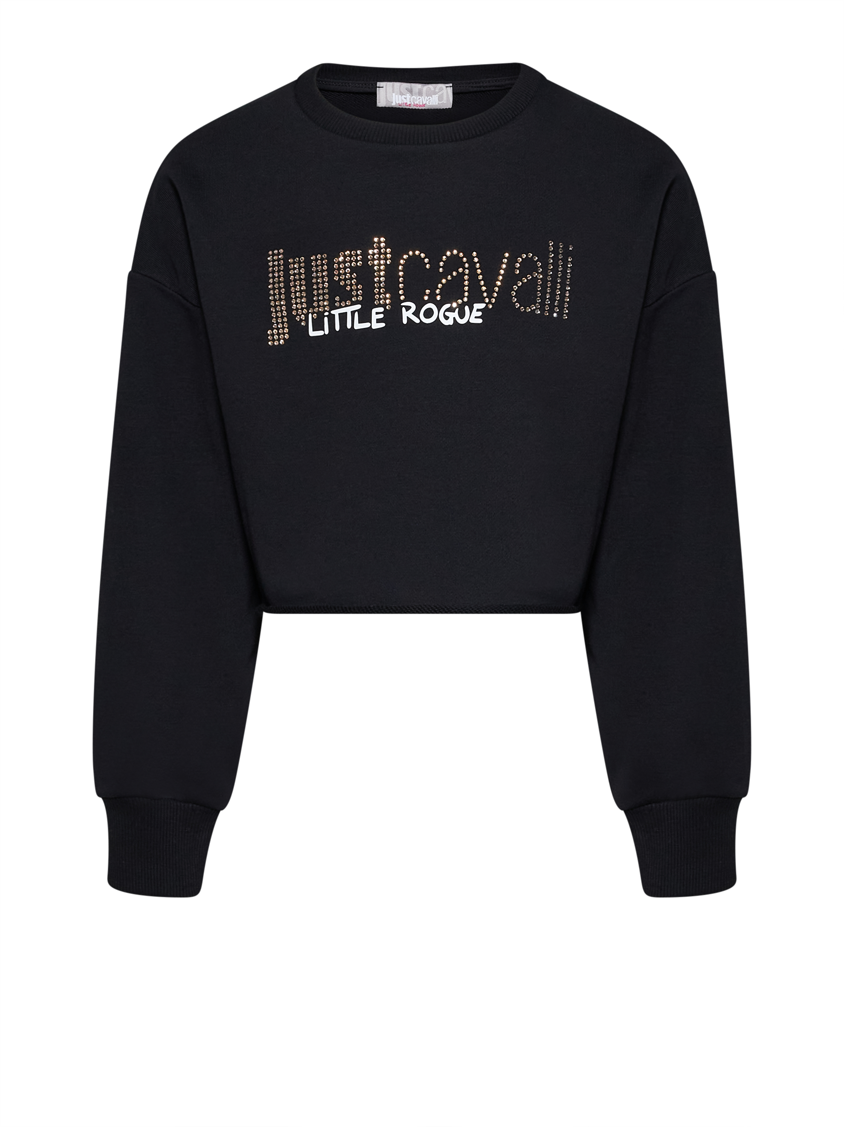 Felpa JUST CAVALLI nera a girocollo cropped e logo sul davanti
