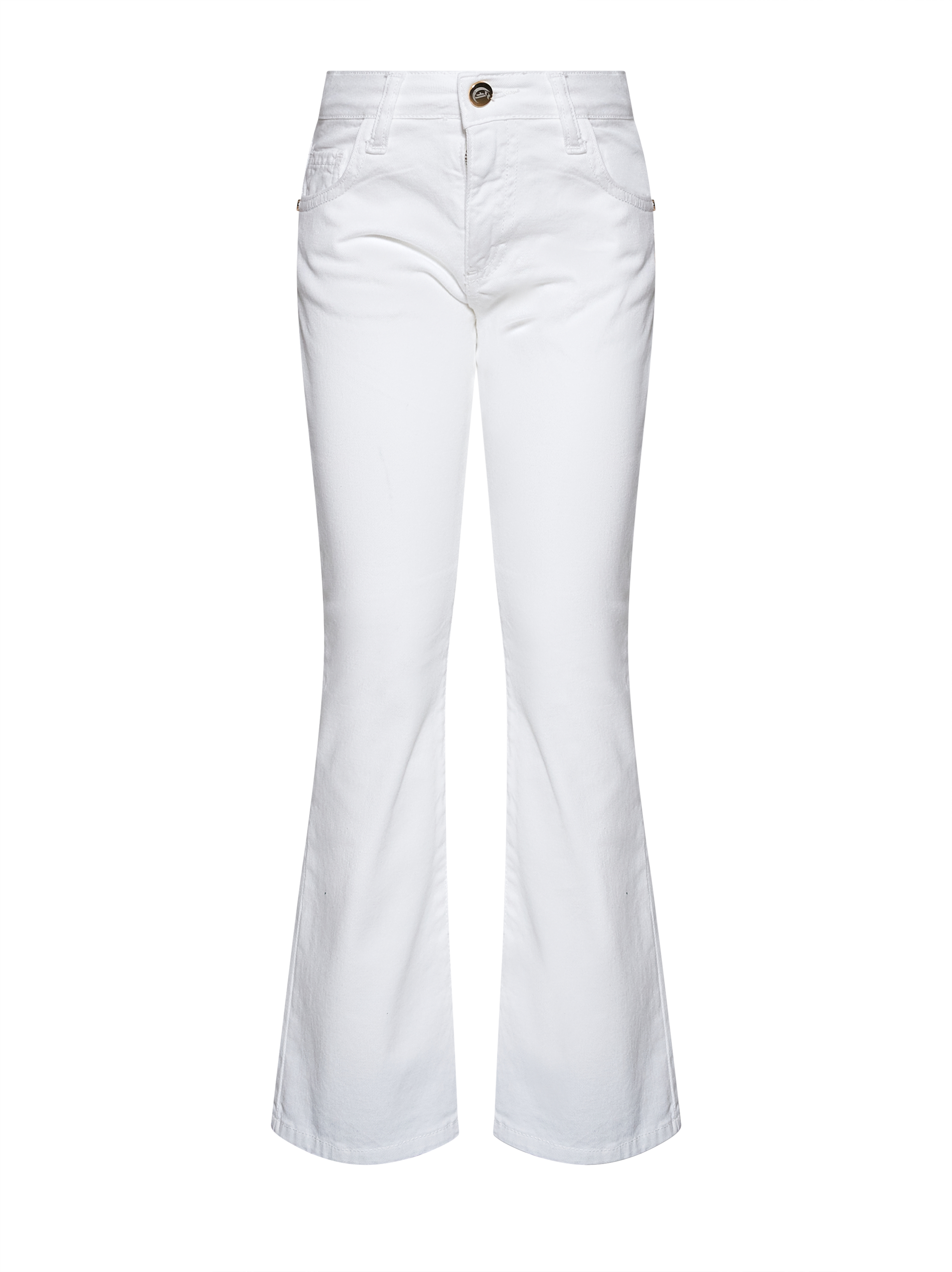 Jeans JUST CAVALLI in denim bianco a zampa comodo da indossare nel quotidiano.