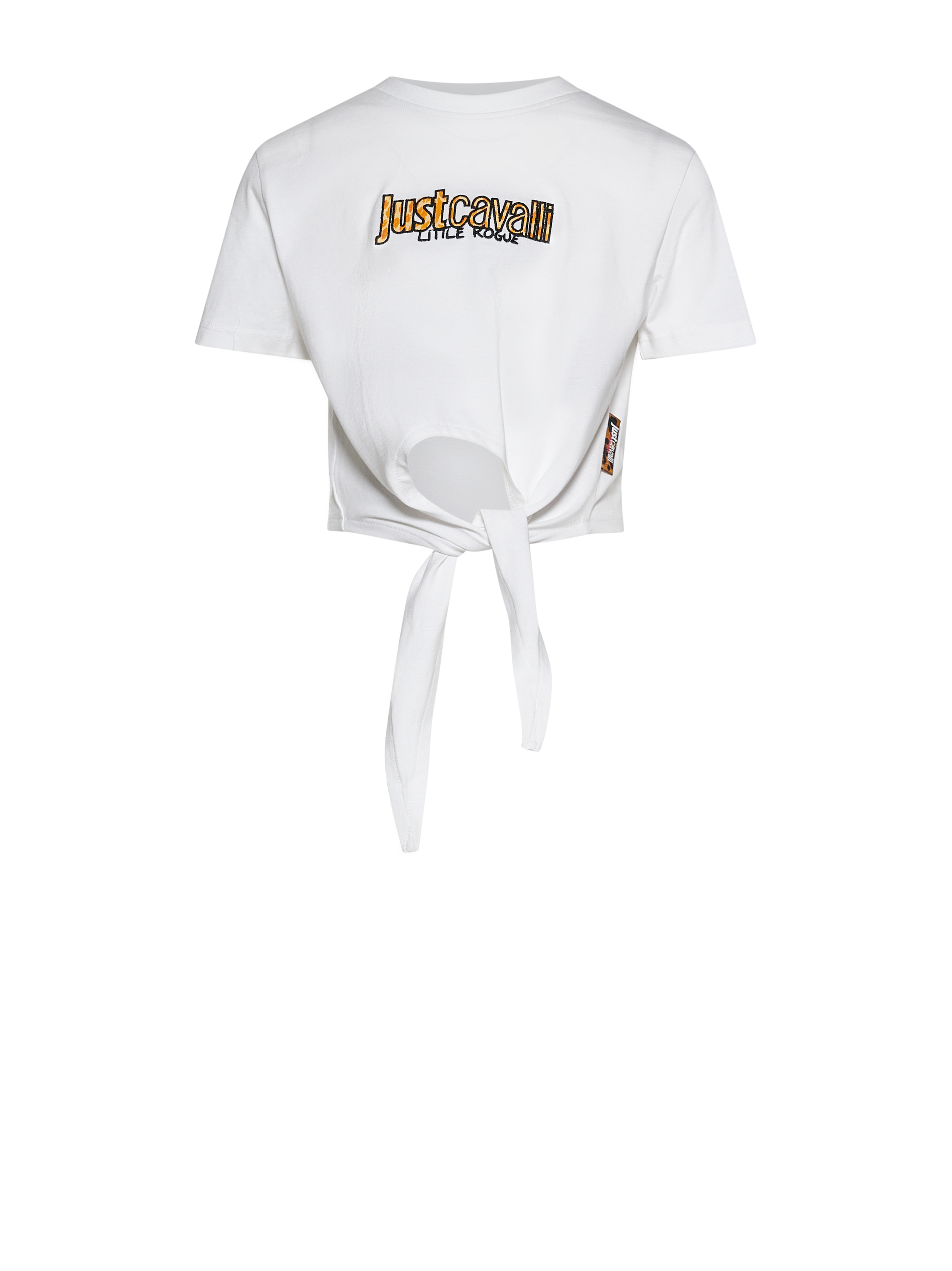 T-shirt JUST CAVALLI nel colore bianco in cotone corta con nodo davanti.