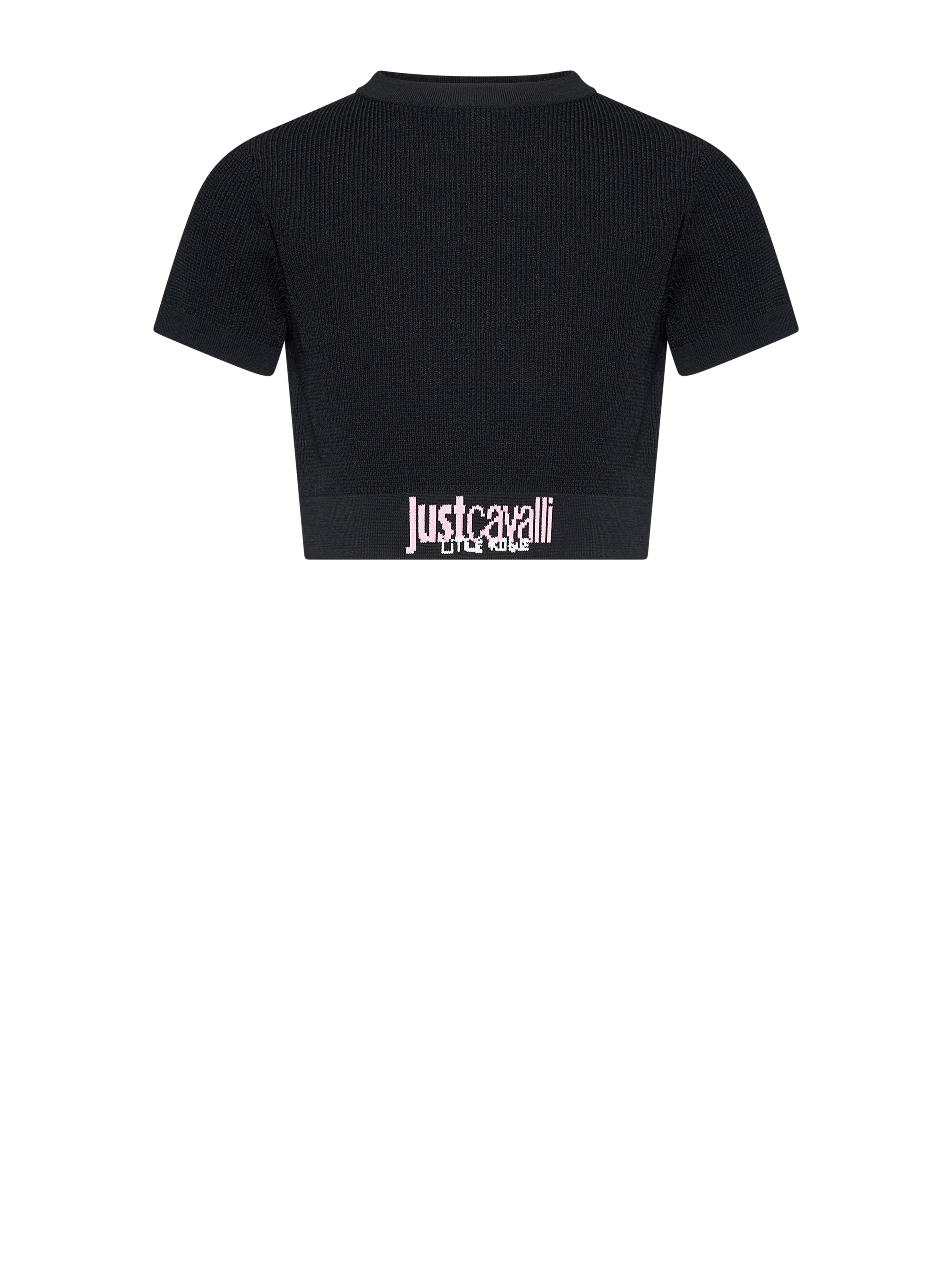 T-shirt JUST CAVALLI nera cropped in maglia con logo