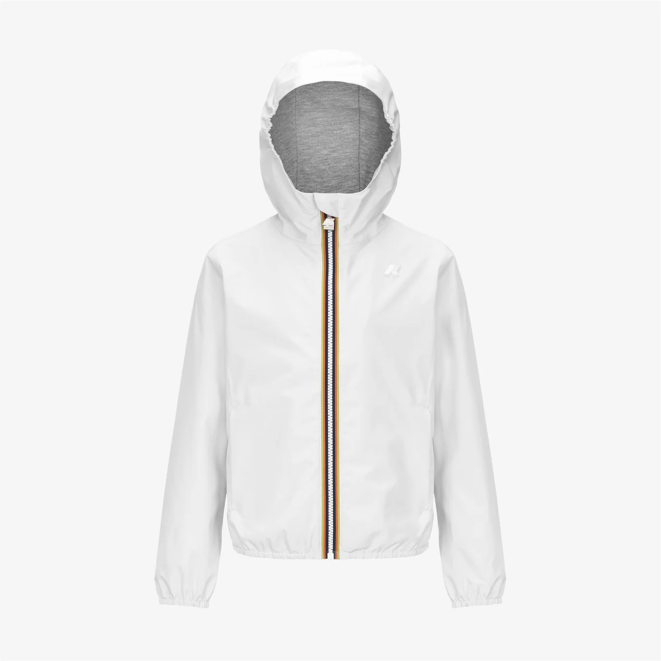 Giubino K-WAY si caratterizza per l'esterno in poliestere con spalmatura impermeabile e antivento e la fodera in morbido jersey grigio melange . Cuciture termonastrate, cappuccio non staccabile, chiusura con zip, Polsi e bordo fondo con elastico, 2 tasche con zip