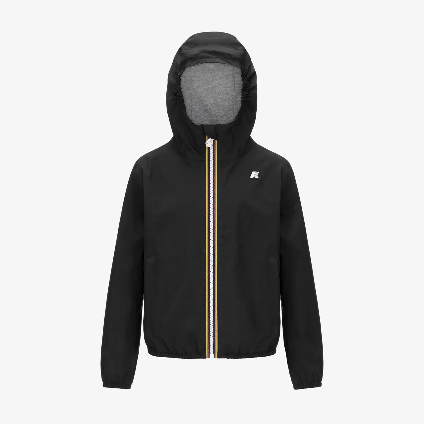 Giubino K-WAY si caratterizza per l'esterno in poliestere con spalmatura impermeabile e antivento e la fodera in morbido jersey grigio melange . Cuciture termonastrate, cappuccio non staccabile, chiusura con zip, Polsi e bordo fondo con elastico, 2 tasche con zip