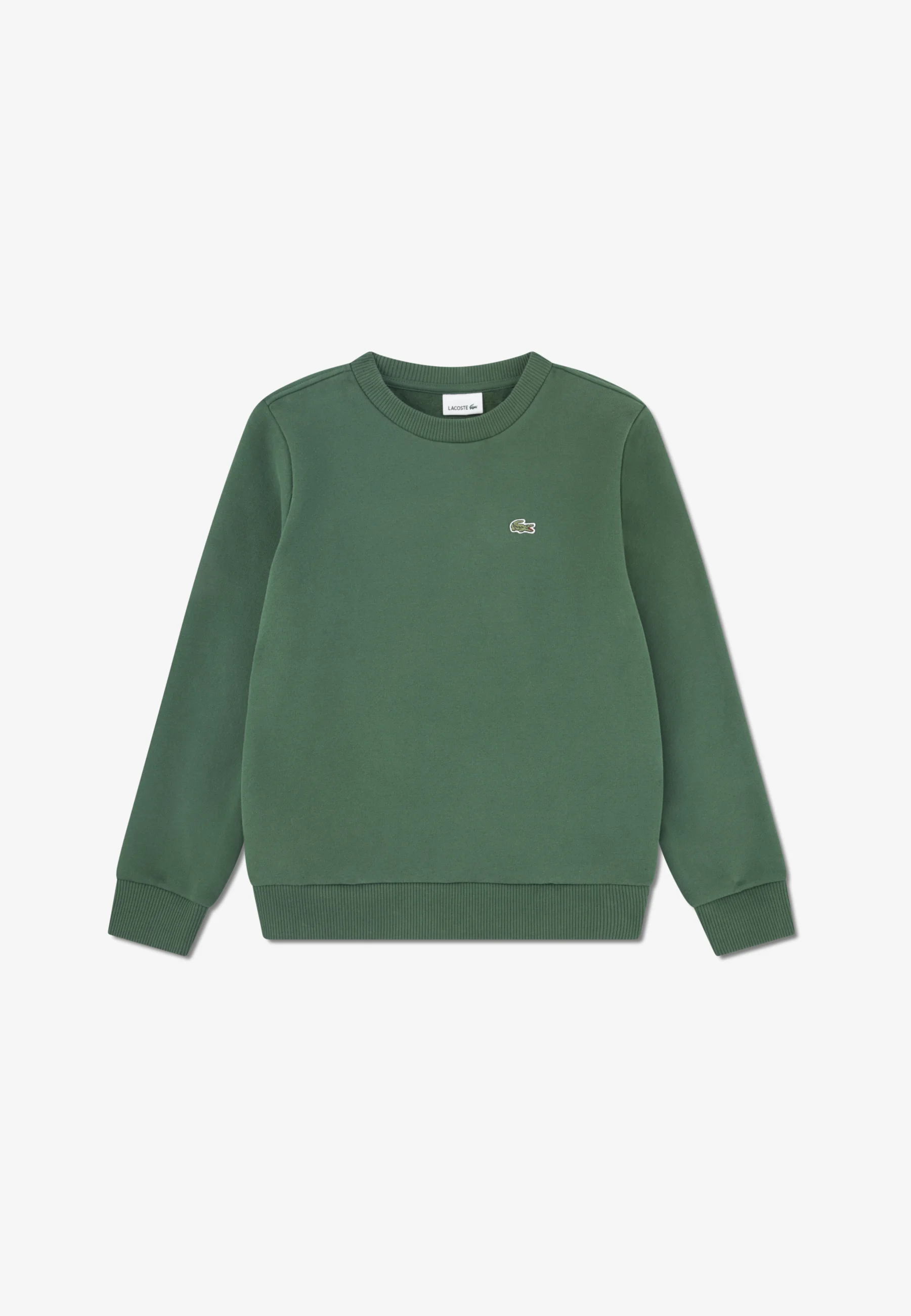 Felpa LACOSTE verde con tessuto felpato in maglia misto cotone/poliestere contenente fibre organiche e riciclate. Maniche lunghe, polsini e orlo a coste, logo coccodrillo ricamato.