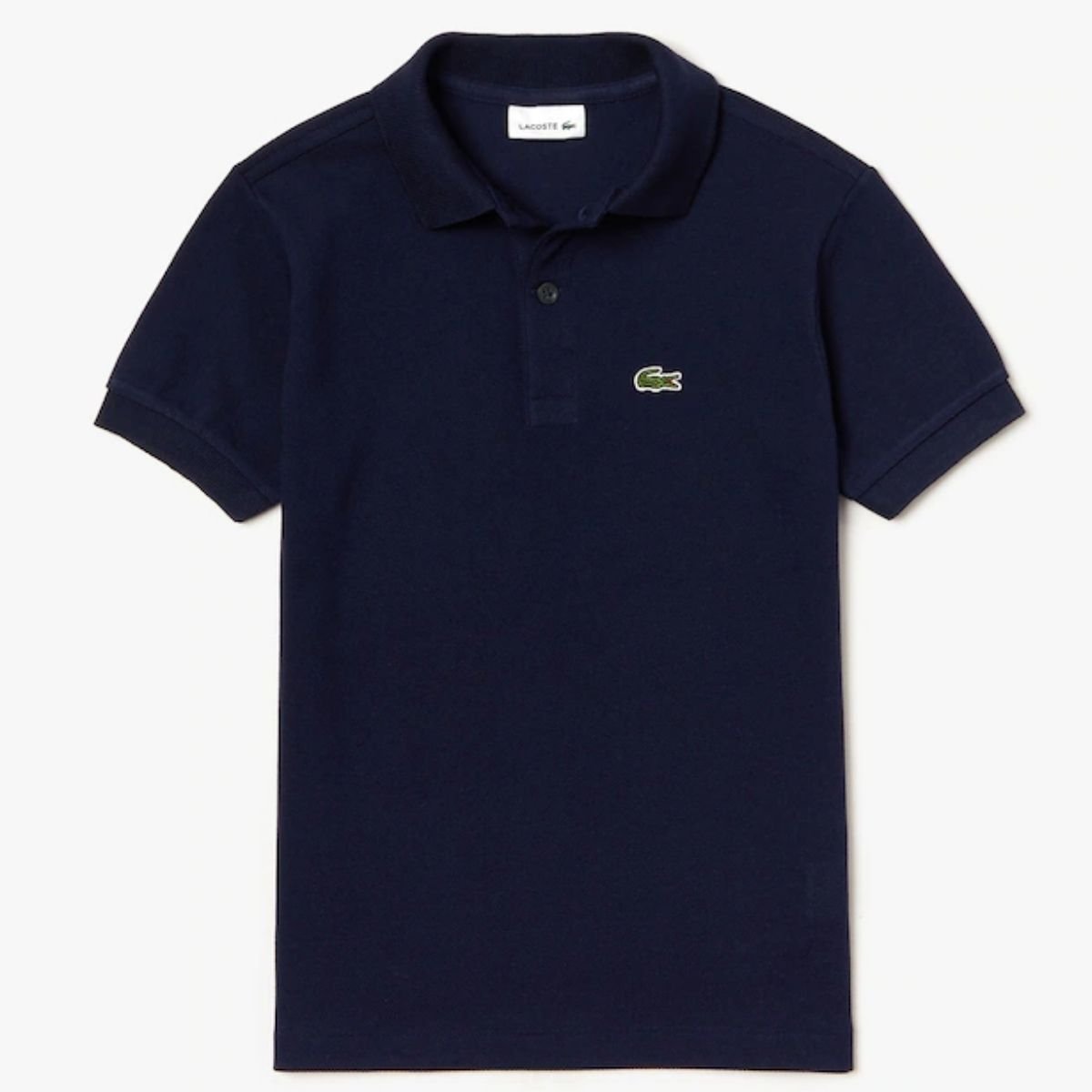 Polo LACOSTE blu realizzata in piqué di cotone, manica corta, logo.