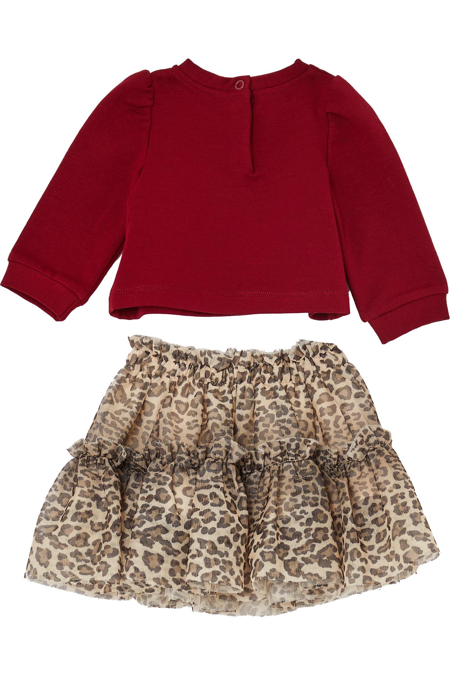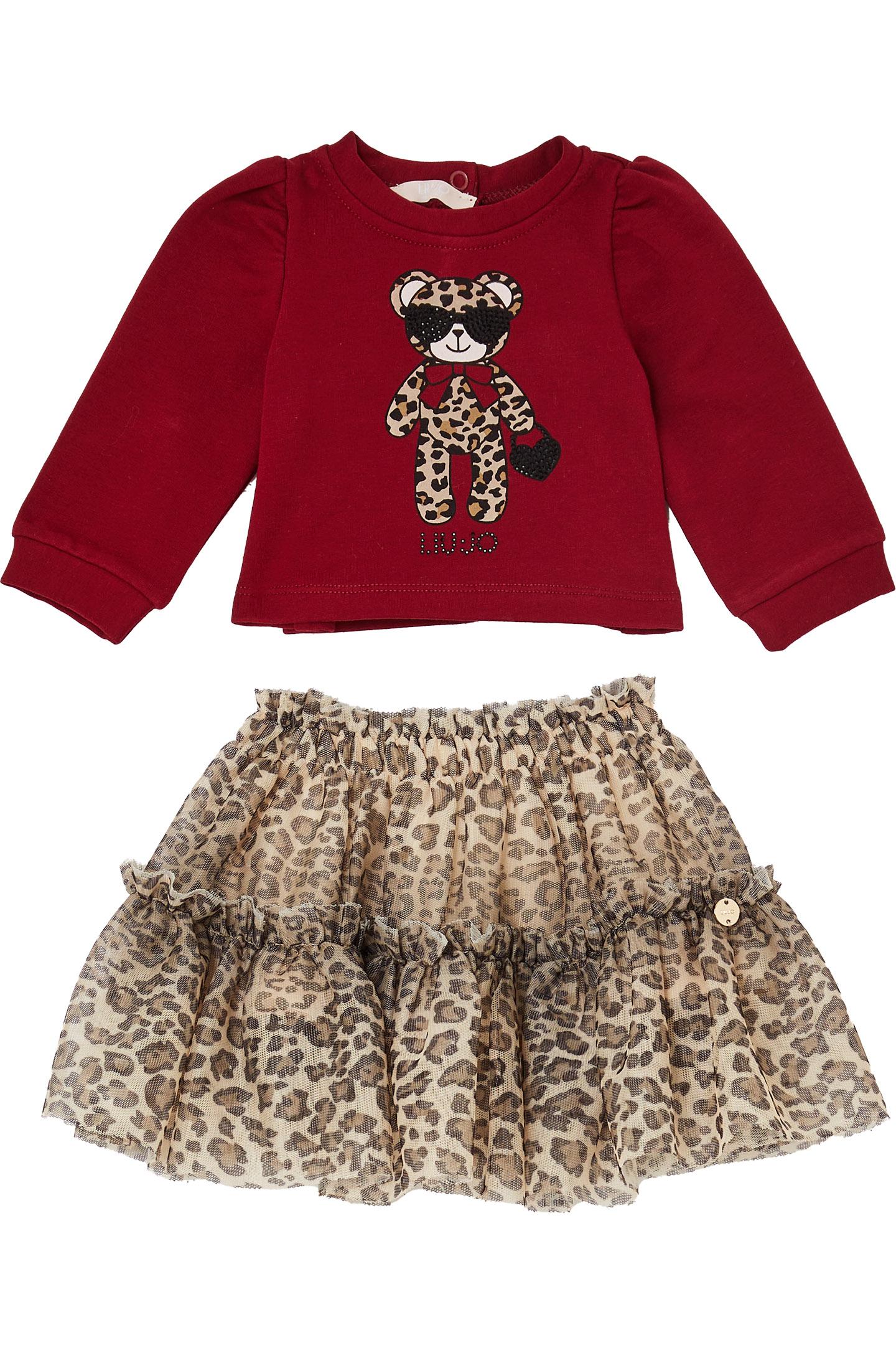 Completo LIUJO maculato composto da felpa rossa a girocollo e gonna maculata