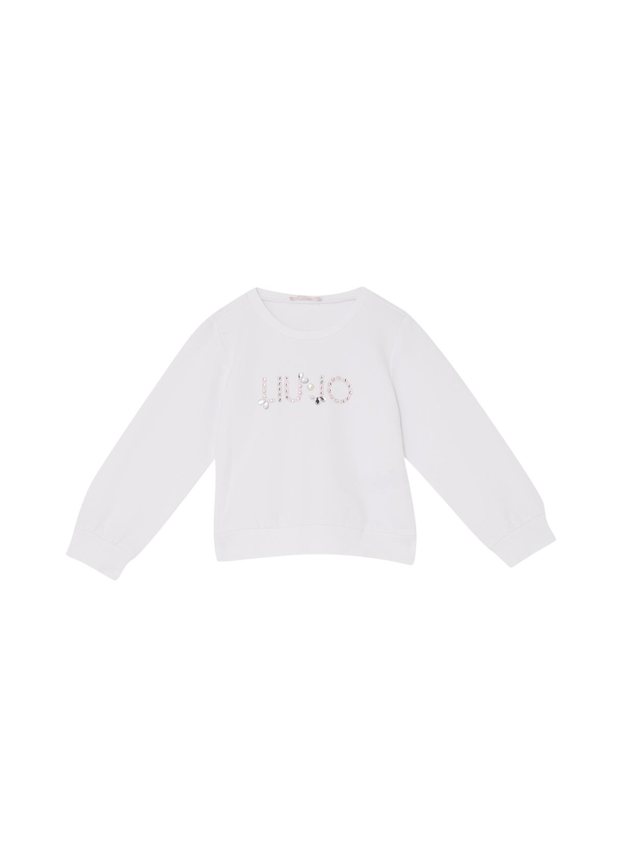 Felpa LIUJO bianca a girocollo, manica lunga e logo