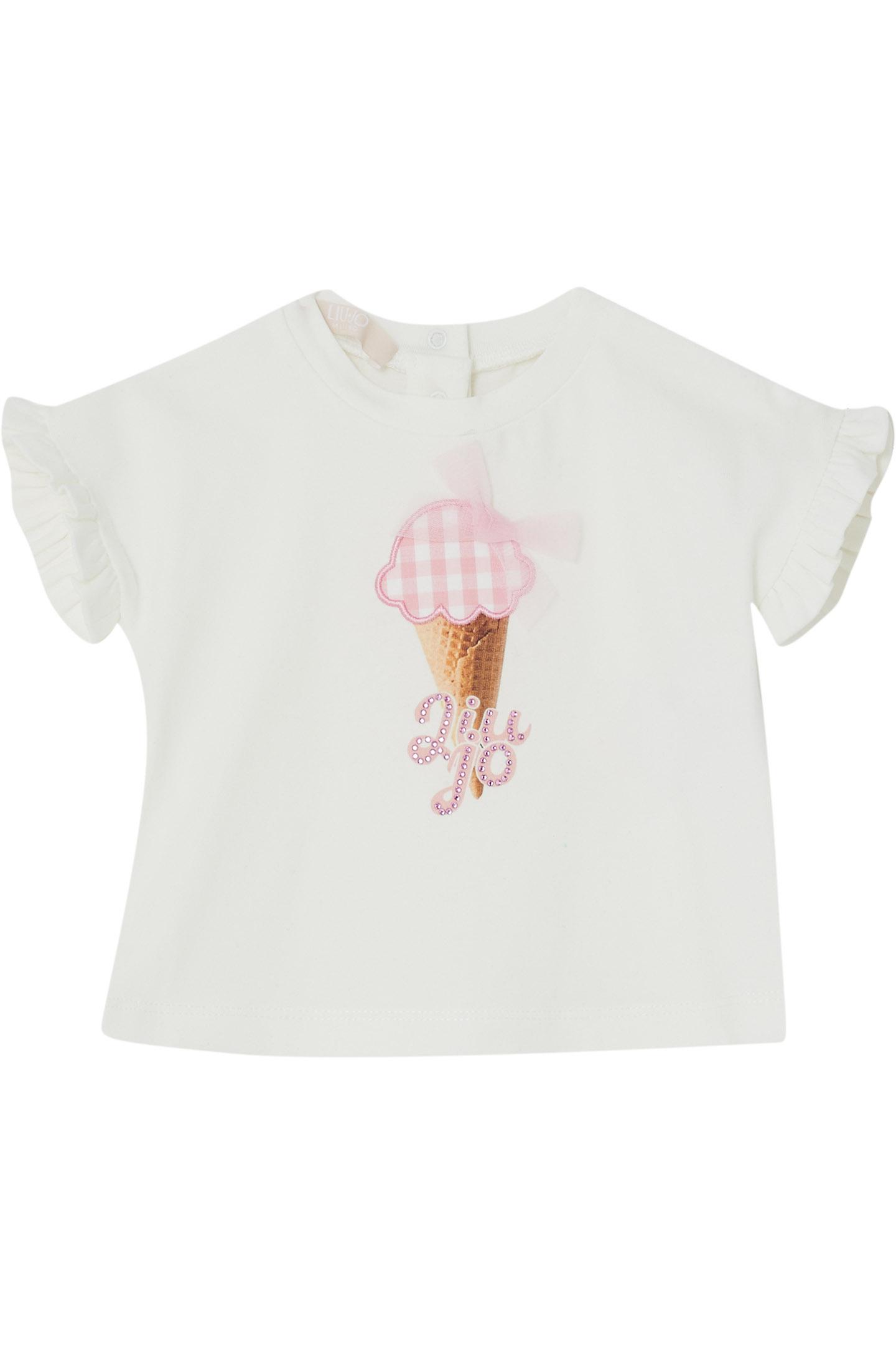 T-shirt LIUJO bianca a manica corta in cotone con stampa e logo.