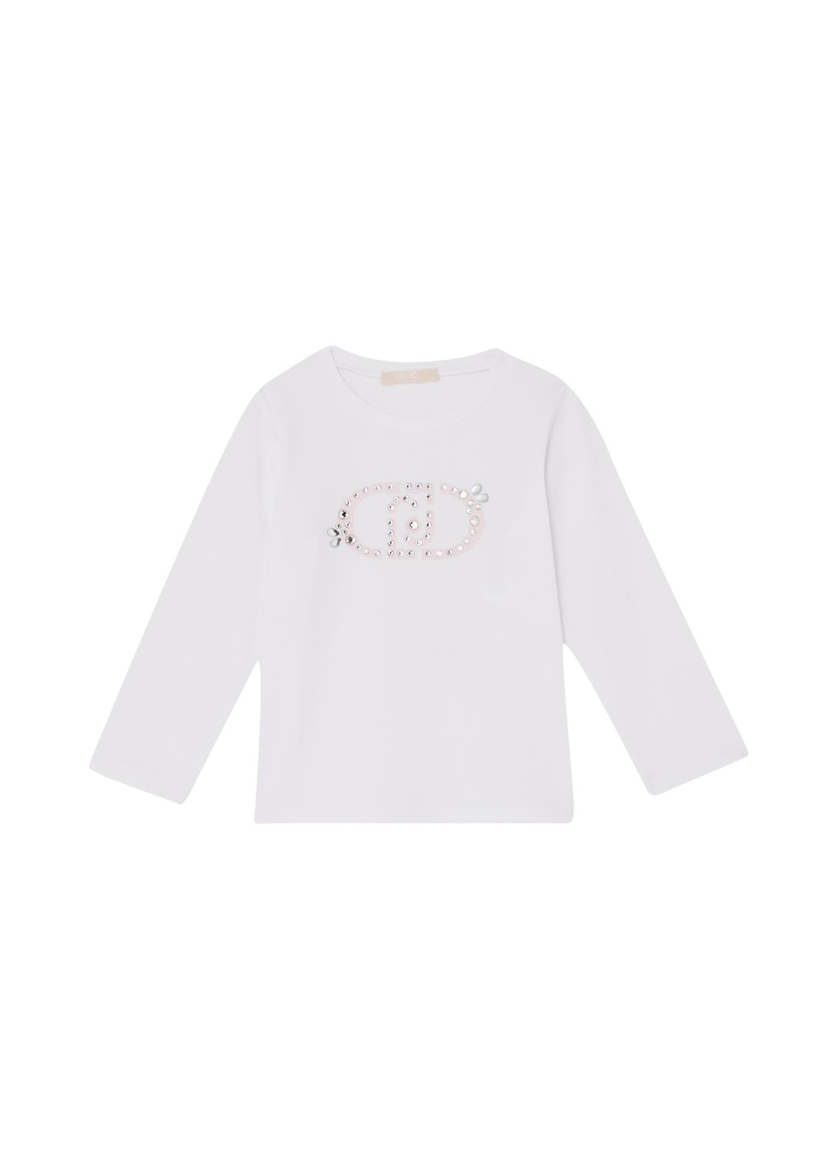 T-shirt LIUJO in cotone, girocollo, manica lunga e logo rosa