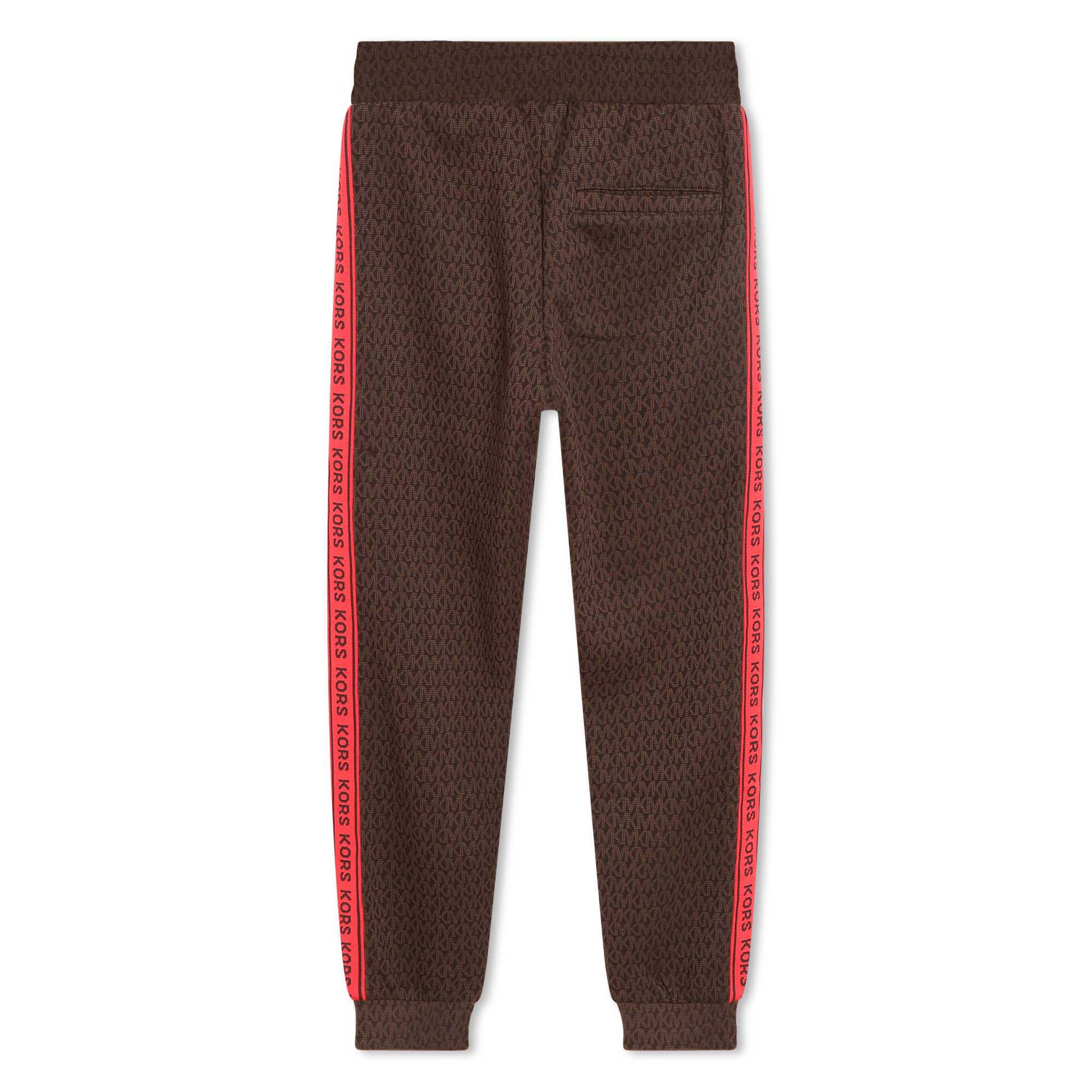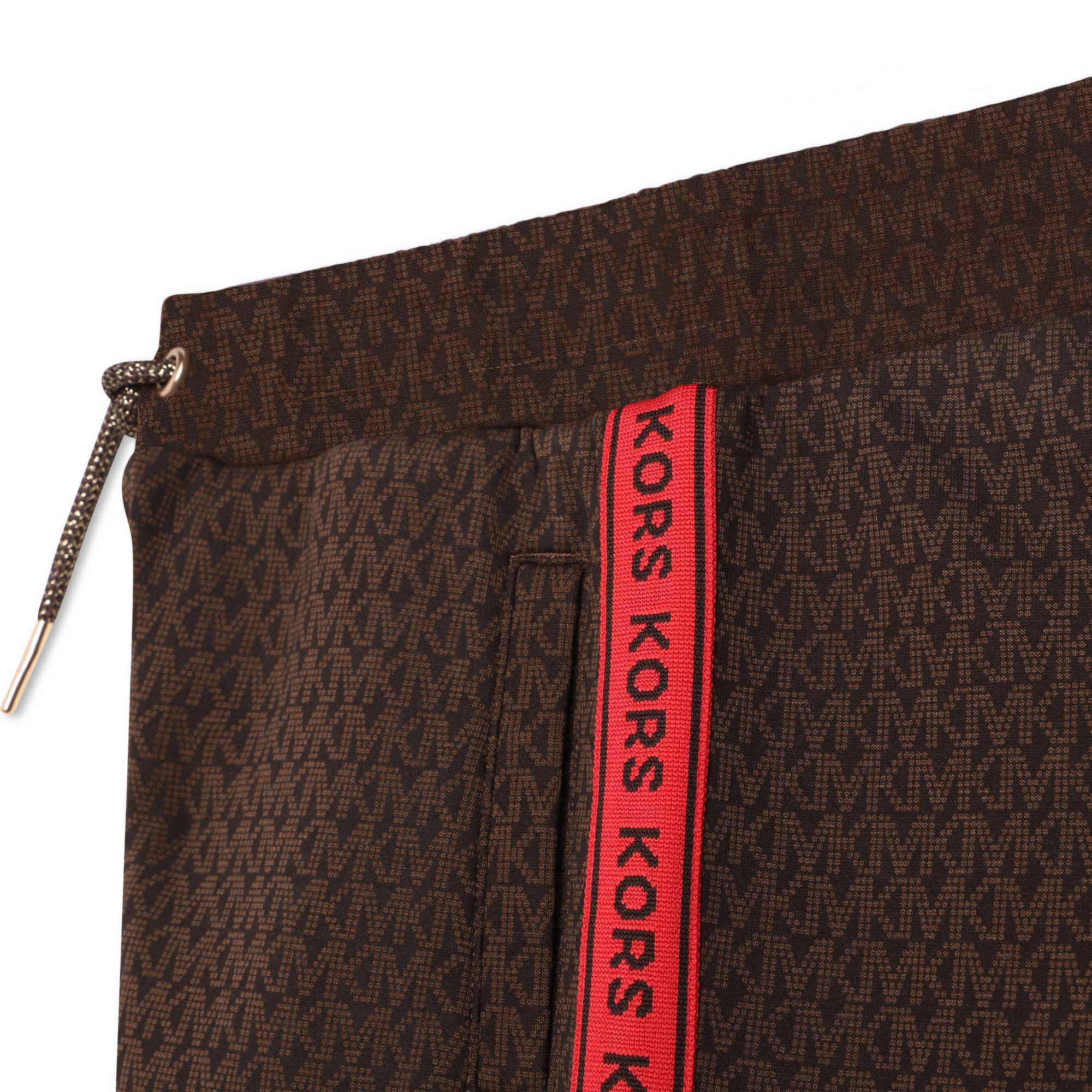 Pantalone MICHAEL KORS joggers realizzati in morbido tessuto di misto viscosa stretch. Fantasia con logo monogram su tutto il capo. Elastico e coulisse in vita, tasche aperte sul davanti, tasca a filetto sul retro. Bande laterali in contrasto di colore con logo a intarsio lungo tutta la gamba. Polsini elasticizzati sul fondo.