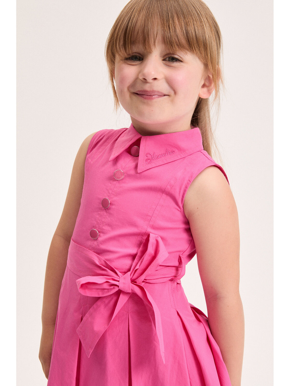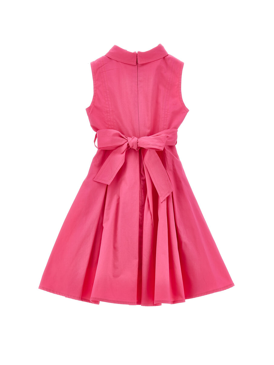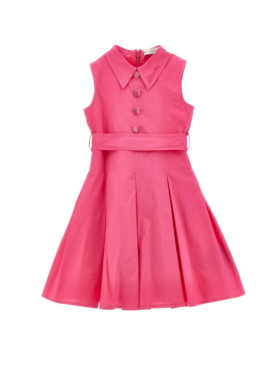 Abito MONNALISA fucsia elegante e raffinato, con dettaglio di bottoni sul davanti e cintura che si chiude a fiocco.