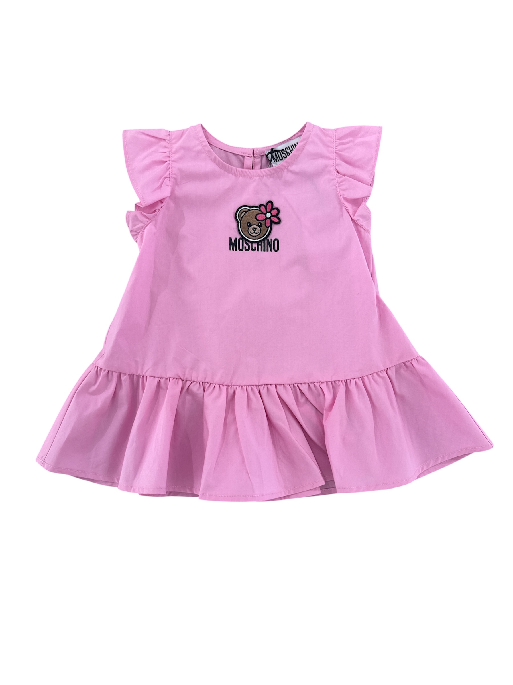 Abito MOSCHINO rosa a manica corta svasato e logo