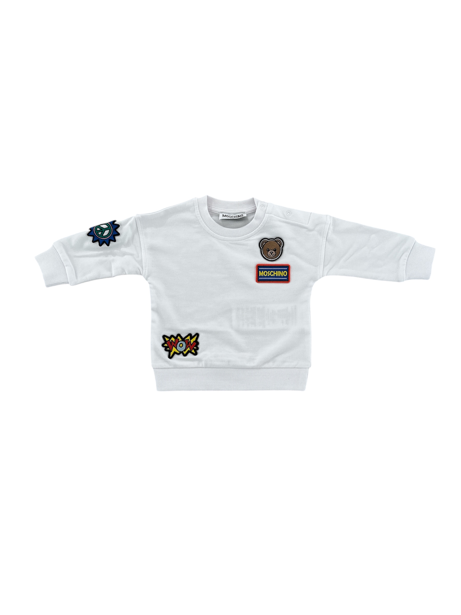 Felpa MOSCHINO bianca a girocollo, in cotone, manica lunga con logo