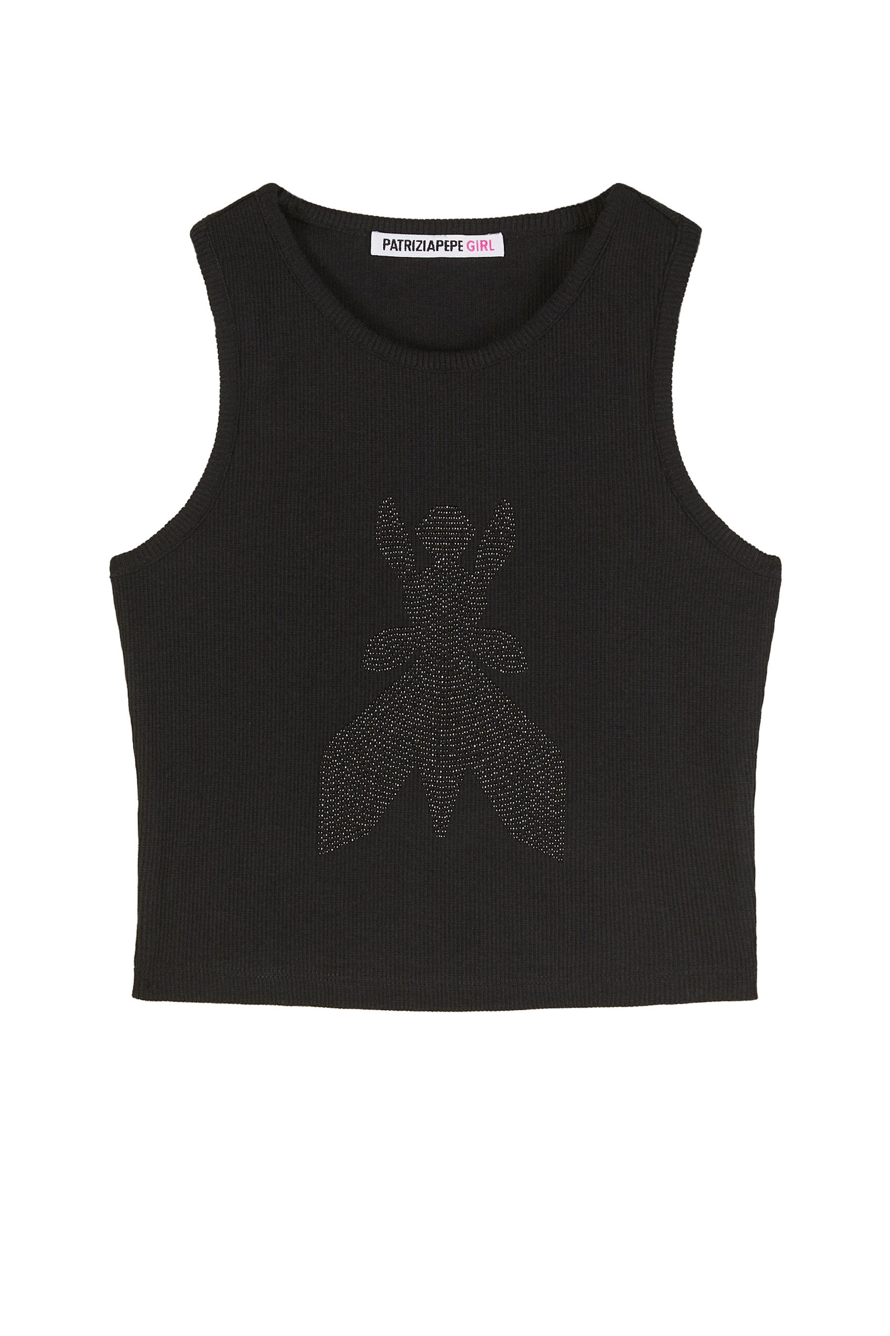 Canotta PATRIZIA PEPE a coste con logo strass sul davanti.