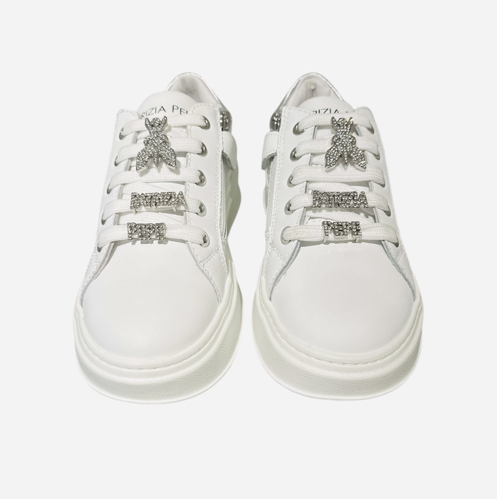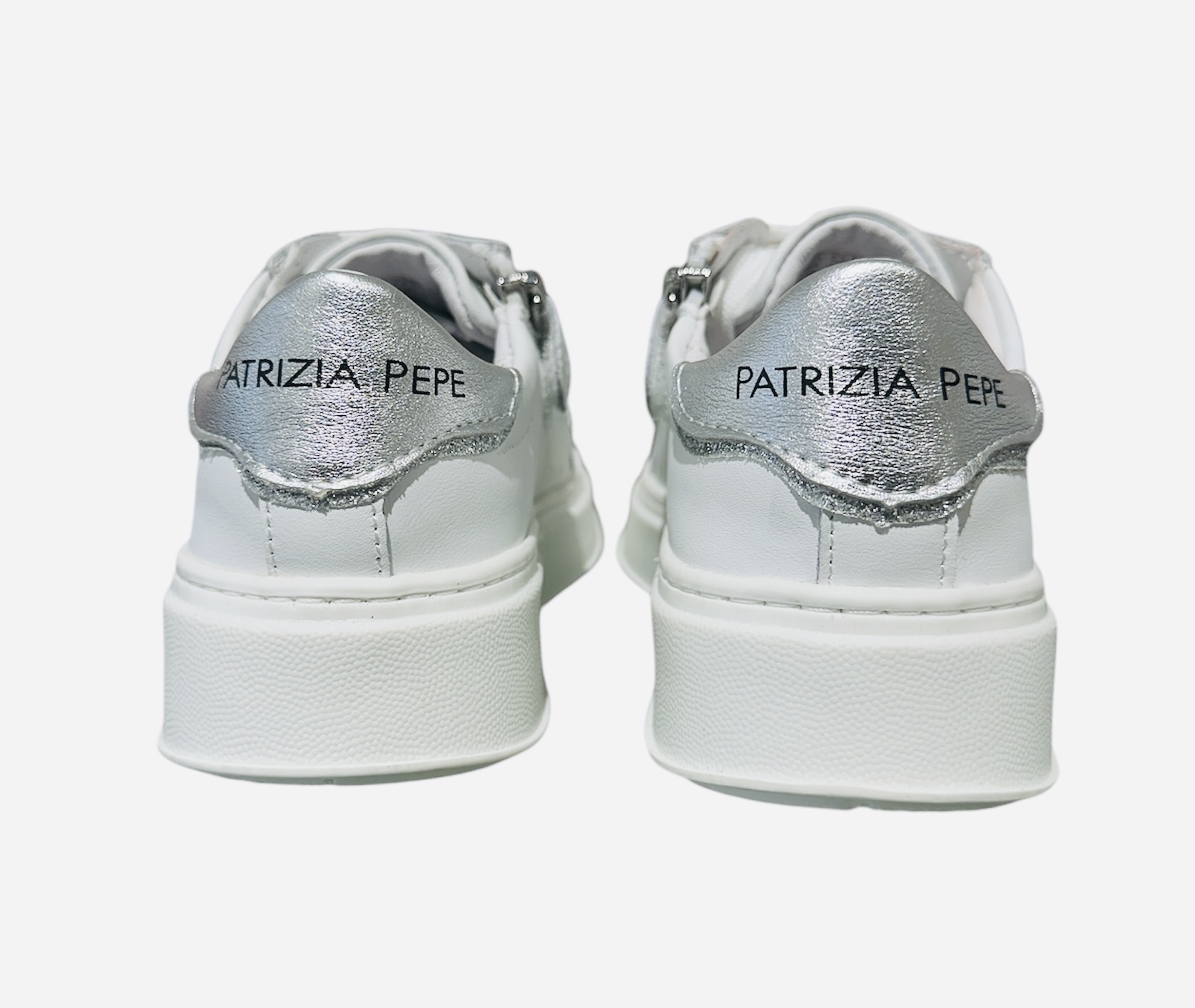 Sneakers PATRIZIA PEPE bianca con tomaia in pelle, suola in gomma, inserto in argento