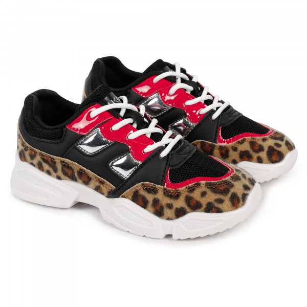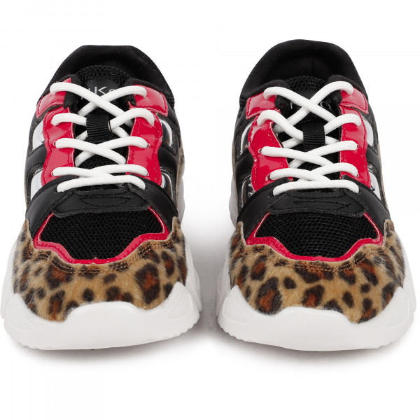 Sneakers PINKO in pelliccia finta leopardata, dettagli in argento lucido e rosso.Le suole di gomma sono sicuramente comode e le solette manterranno i suoi piedi stabili ma permetteranno alla pelle di respirare.
