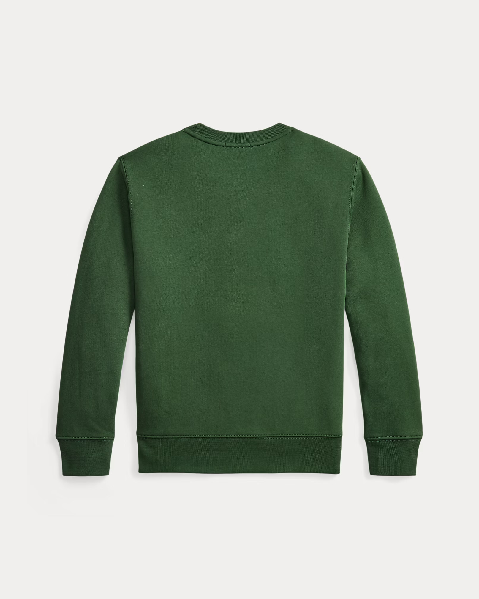 Felpa RALPH LAUREN verde a girocollo, maniche lunghe con polsini a coste. Polo Bear e scritte "Polo Bear by Ralph Lauren" e "Ralph Lauren" stampati al centro sul davanti.