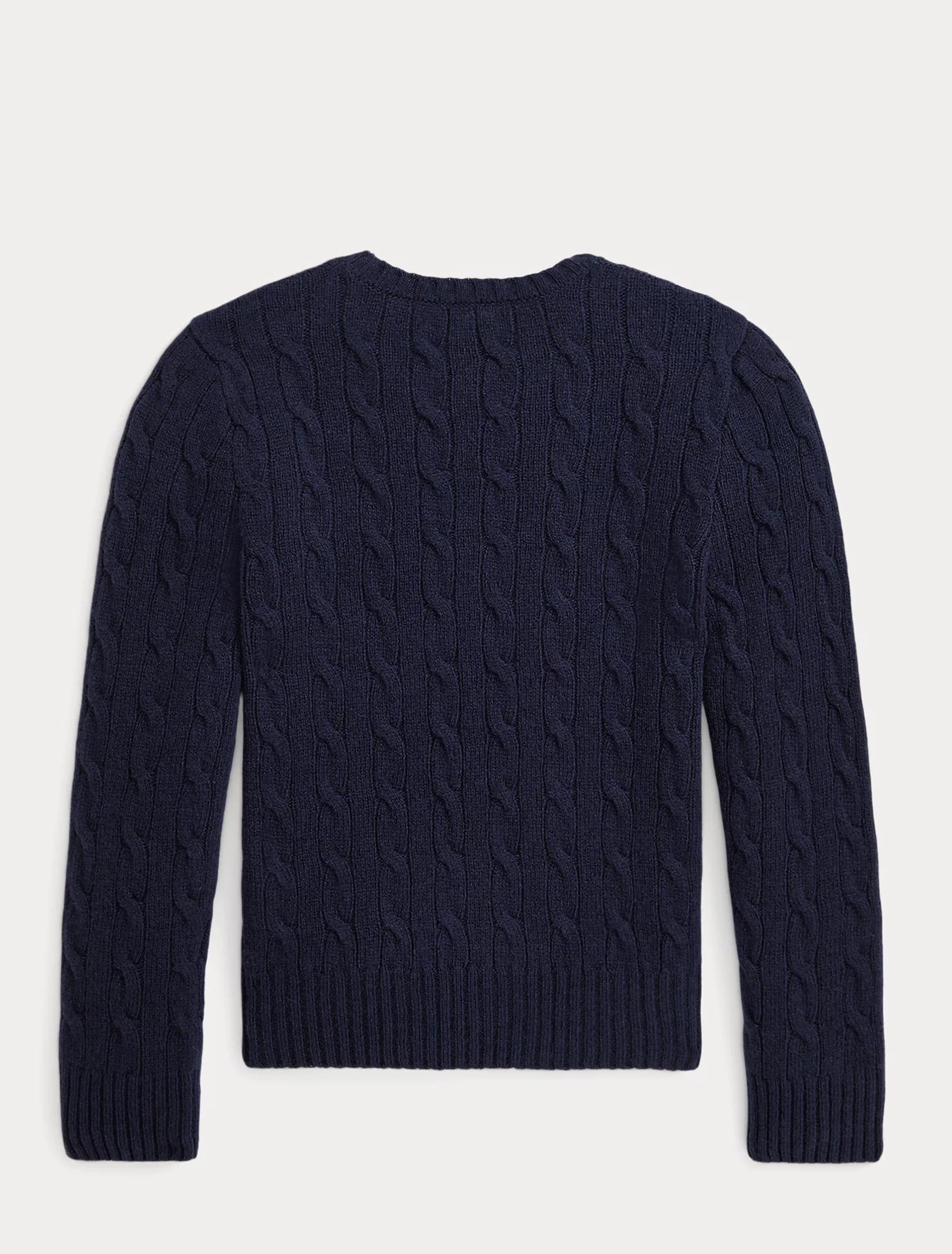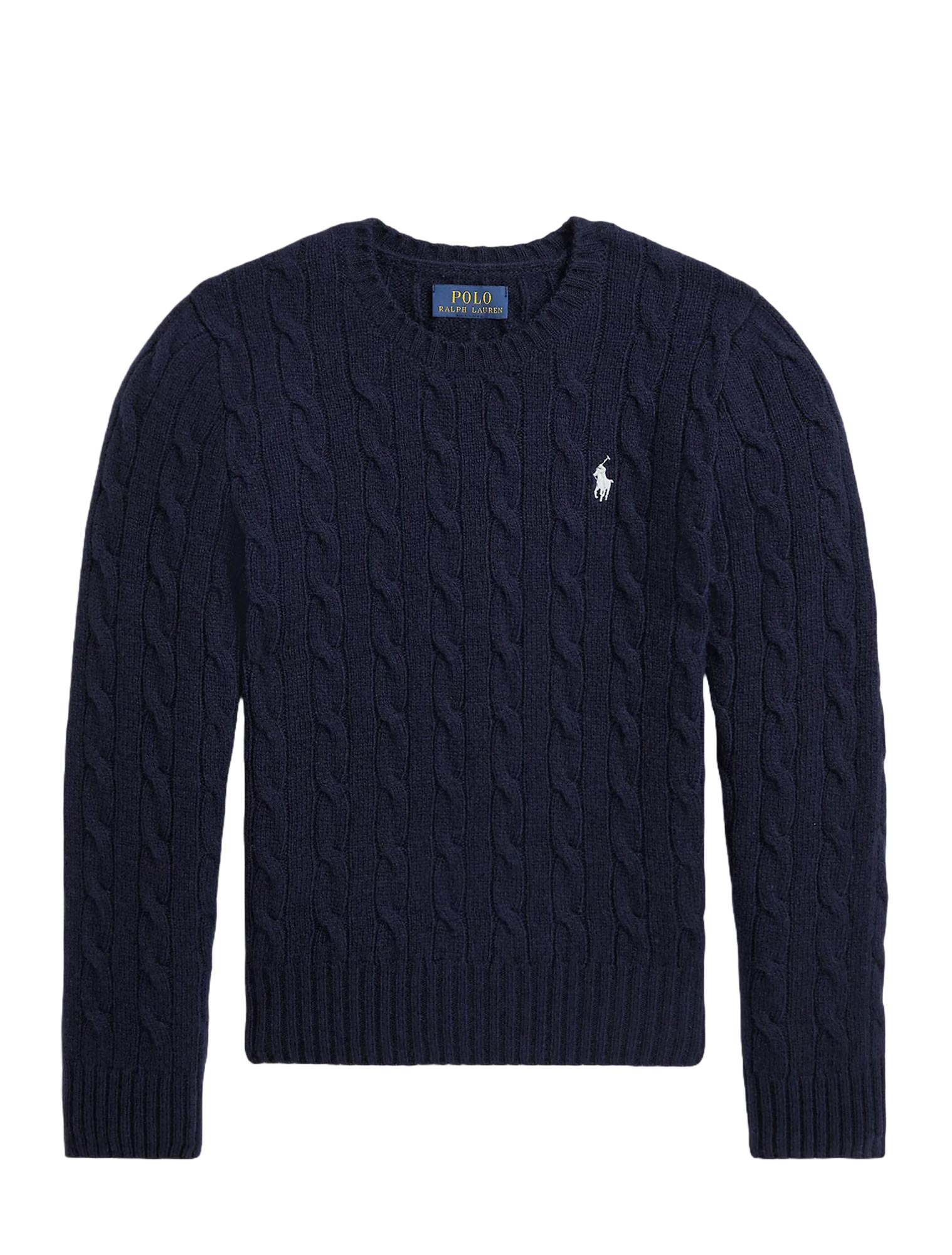 Maglia RALPH LAUREN blu con pony ricamato sul lato sinistro del torace, a girocollo, maniche lunghe con polsini a coste, orlo con lavorazione a coste.
