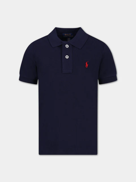 Polo RALPH LAUREN blu in piqué di cotone traspirante, taglio sagomato presenta il nostro esclusivo pony ricamato sul torace. Chiusura a due bottoni, maniche corte con fondo manica a coste.