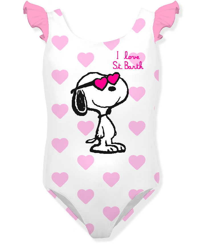 Costume intero SAINT BARTH caratterizzato da delicati volant. Stampa Snoopy Love, vestibilità regolare