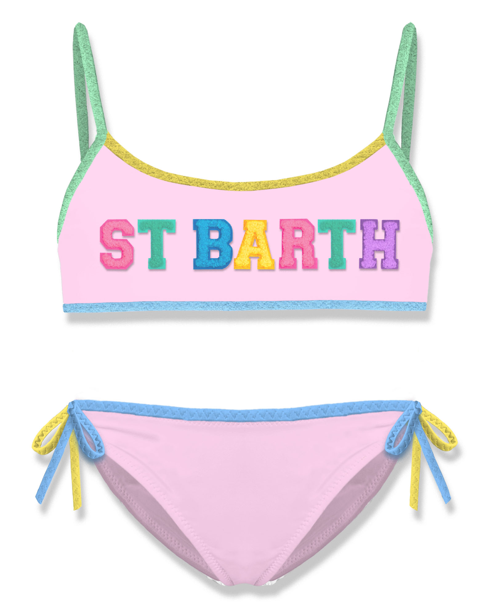 Costume SAINT BARTH due pezzi con top a bralette, slip da bagno con laccetti multicolori sui fianchi