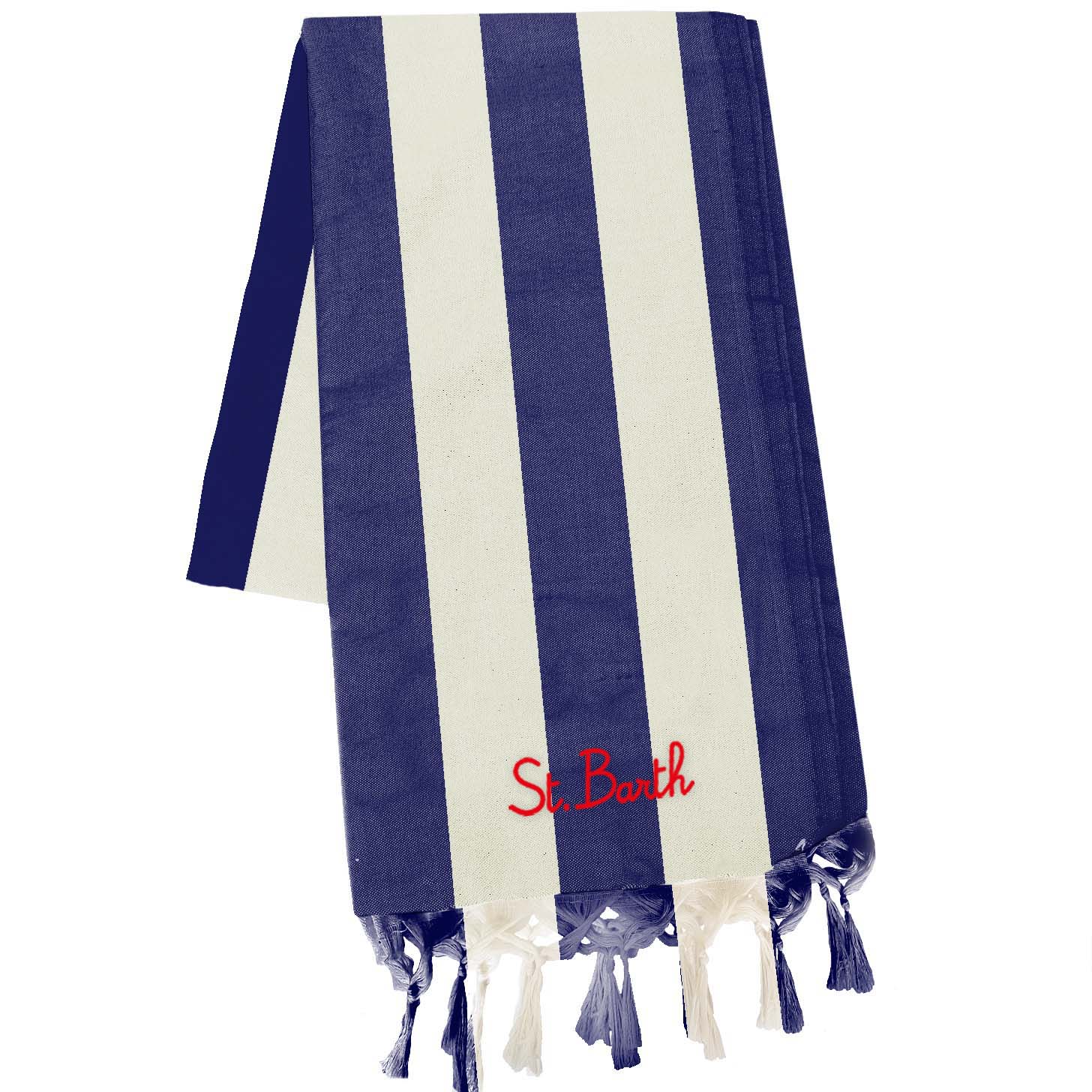 Telo SAINT NARTH da spiaggia in cotone, stampa a righe, ricamo esclusivo del logo St. Barth