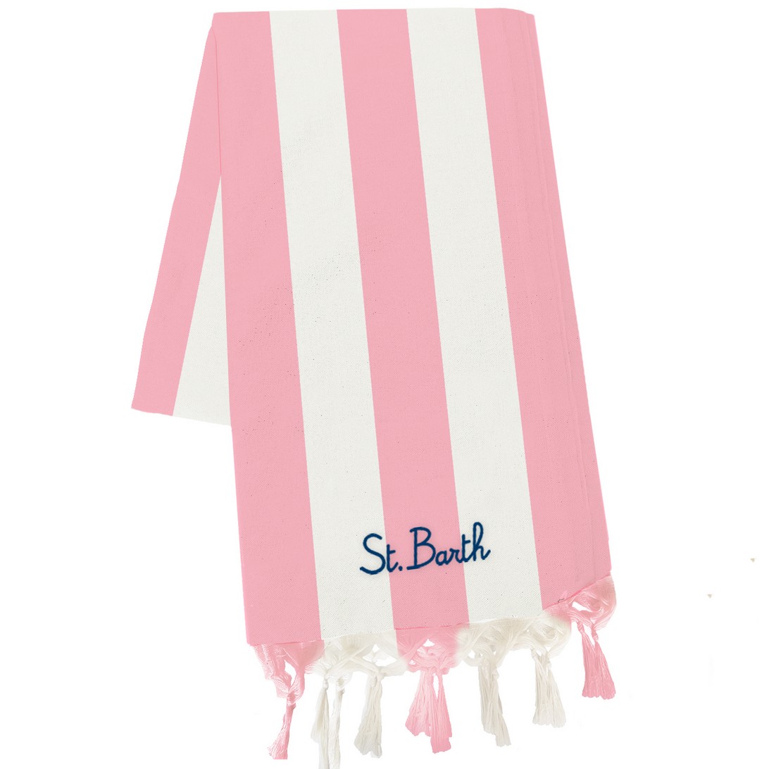 Telo SAINT NARTH da spiaggia in cotone, stampa a righe, ricamo esclusivo del logo St. Barth