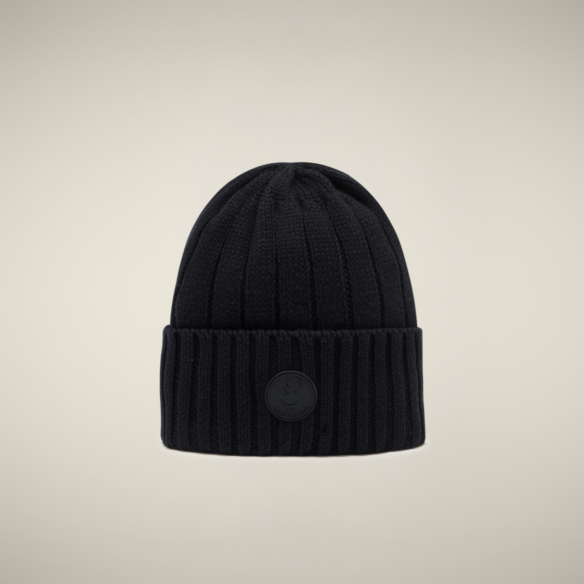 Cappello SAVE THE DUCK realizzato in maglia di cotone calda e morbida il cappello offre al tempo stesso comfort e protezione. Il logo in gomma tono su tono è applicato sul risvolto.