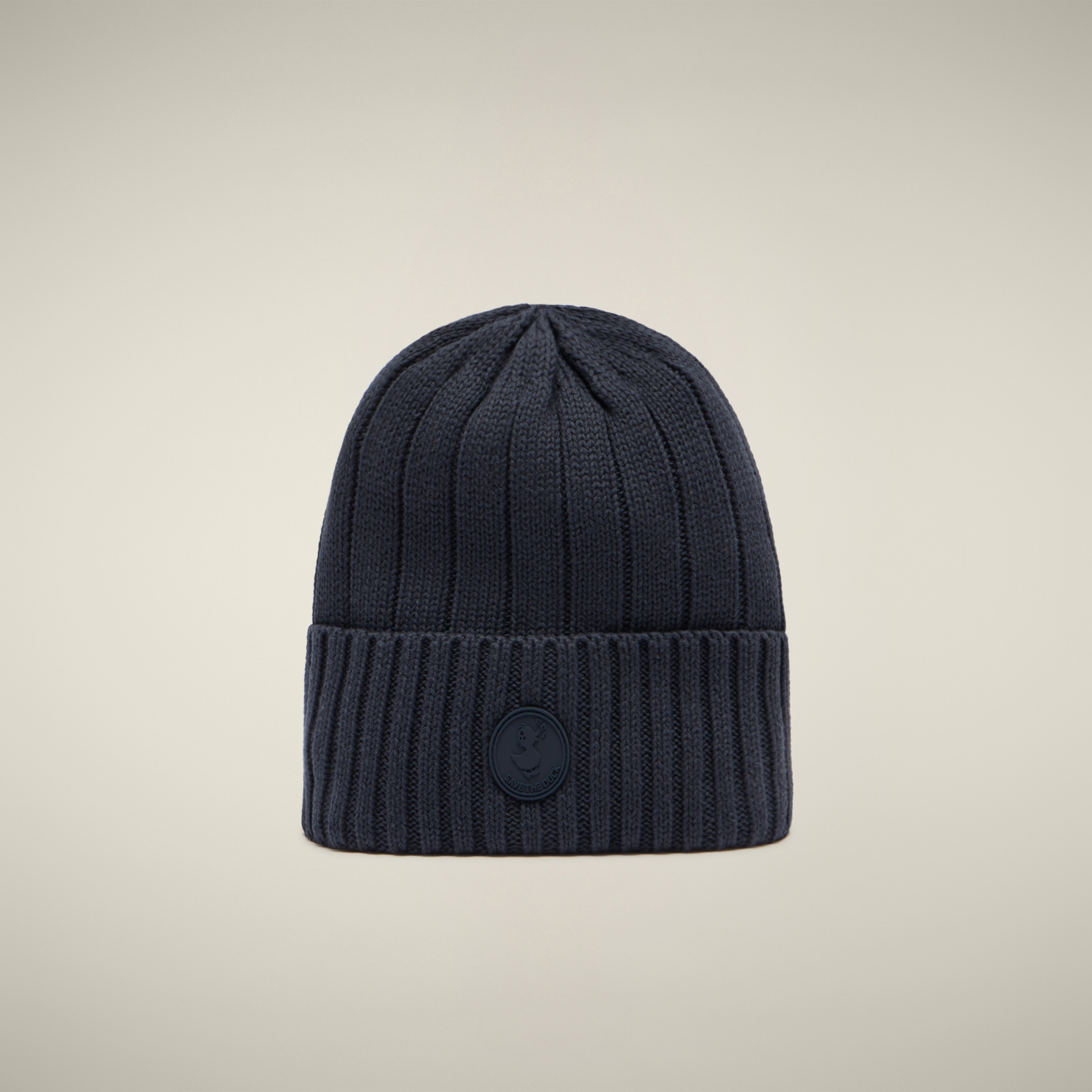 Cappello SAVE THE DUCK realizzato in maglia di cotone calda e morbida il cappello offre al tempo stesso comfort e protezione. Il logo in gomma tono su tono è applicato sul risvolto.