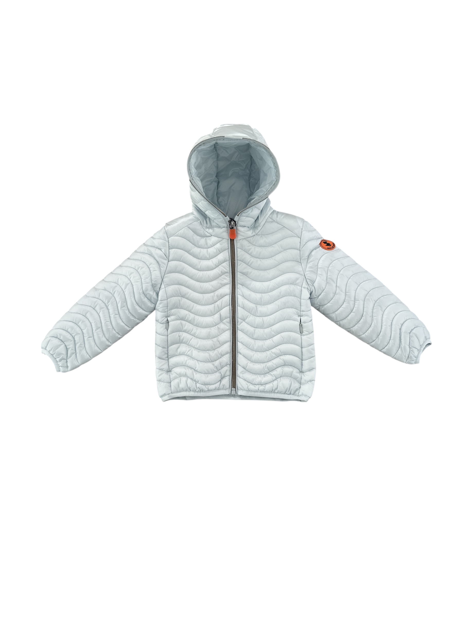 Giubbino SAVE THE DUCK 100 grammi, imbottito e trapuntato, a maniche lunghe, con cappuccio, chiusura frontale con zip, tasche laterali con zip, polsini e orlo elasticizzati. È decorato con logo iconico gommato arancione sulla manica; è imbottito con Plumtech, un'ovatta termica sintetica