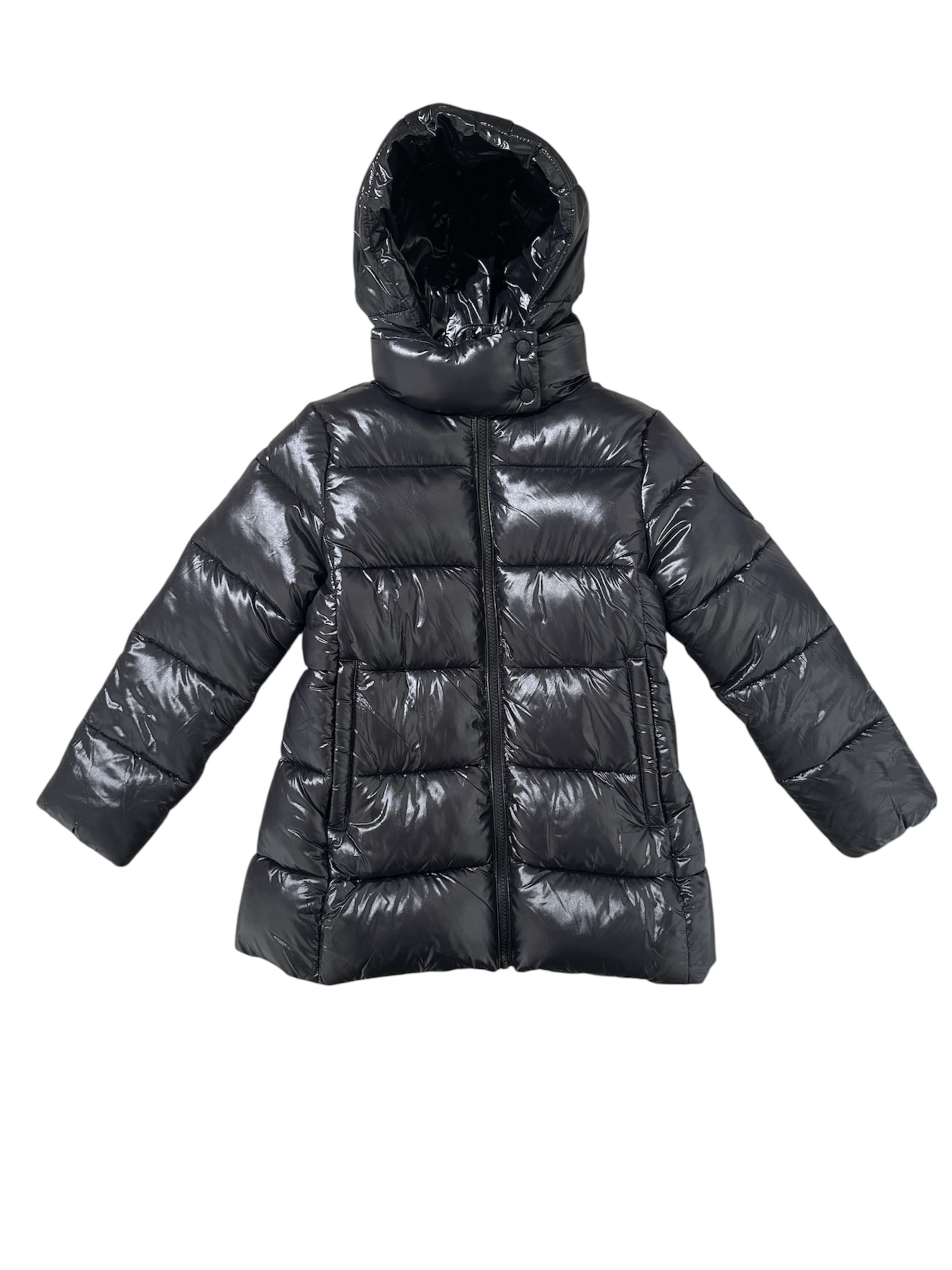 Piumino SAVE THE DUCK con cappuccio e la linea lunga trapuntata. Realizzato in nylon riciclato dalla finitura laqué, presenta due comode tasche zippate. Altri dettagli caratteristici includono il logo rotondo sulla manica e il tiretto personalizzato.