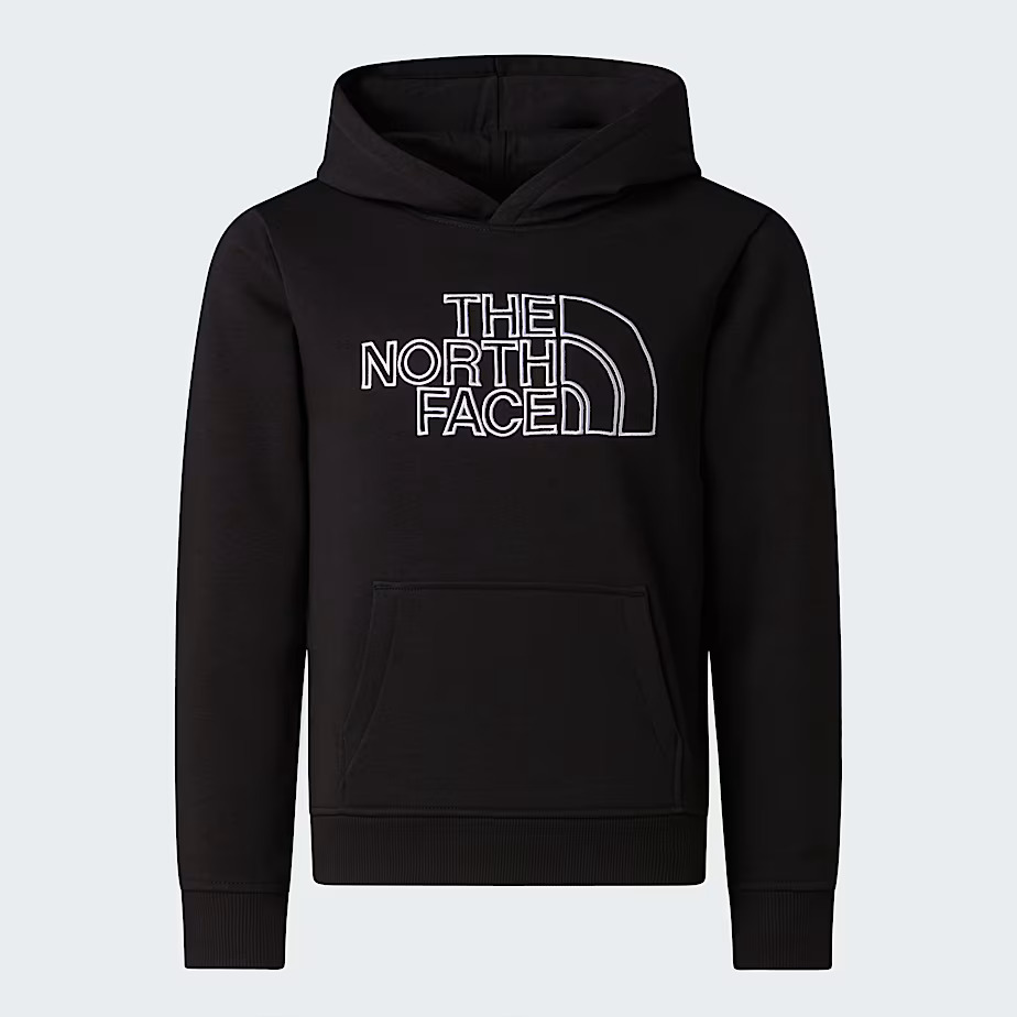 Felpa THE NORTH FACE nera Drew Peak Light, in morbido misto cotone e poliestere, nastro su collo, polsini e orlo inferiore a coste
