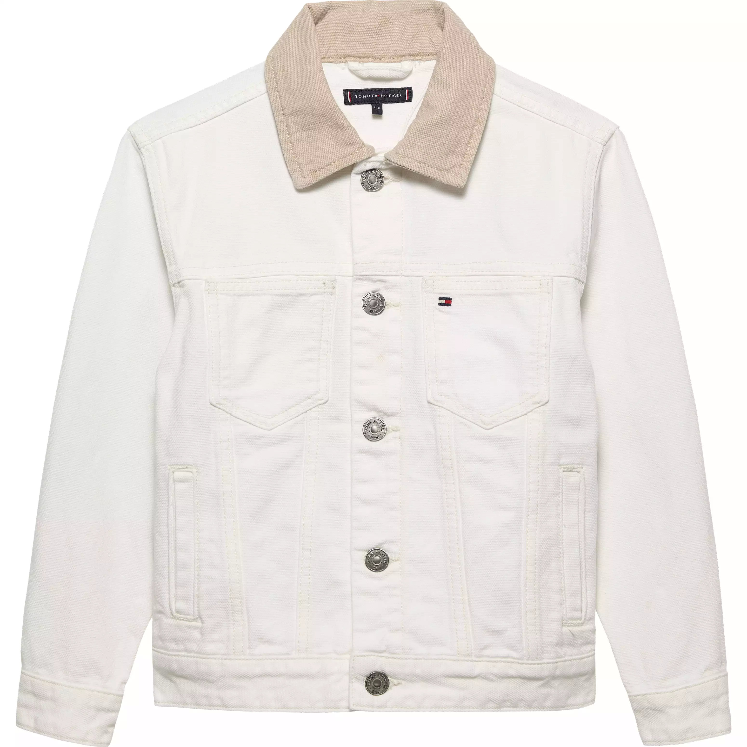 Giubbino TOMMY HILFIGER in denim, ravvivata dalla vistosa bandierina iconica sul retro, colletto semifrancese a contrasto, due tasche applicate sul petto, due tasche a filetto sul davanti, polsini con bottone