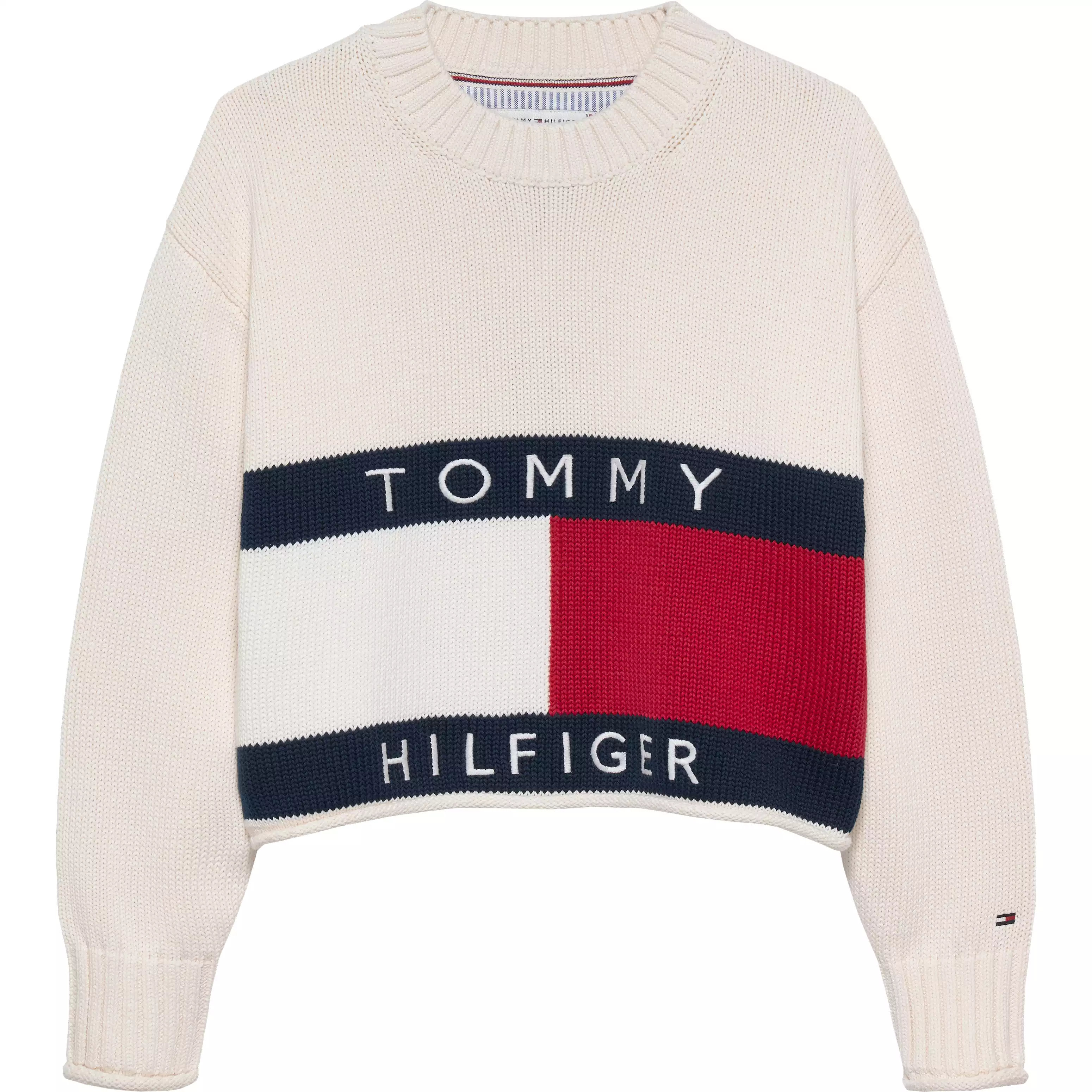 Maglia TOMMY HILFIGER a girocollo, in cotone, modello corto con logo