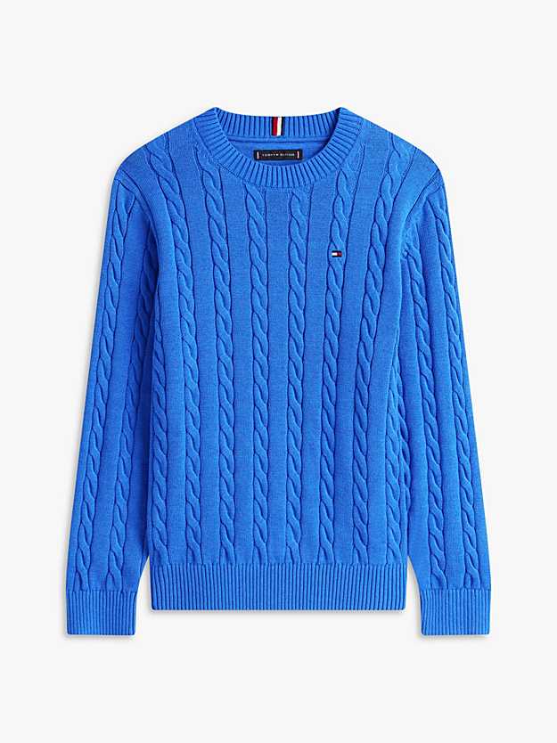 Maglia TOMMY HILFIGER a trecce100% cotone con bandierina ricamata, girocollo, Collo, polsini e fondo a coste