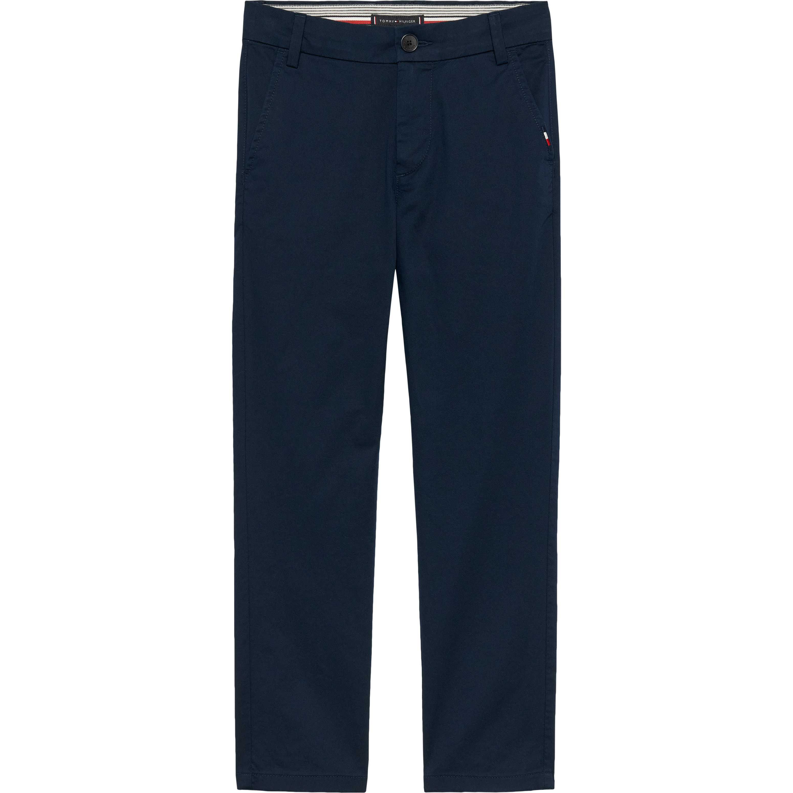 Pantalone TOMMY HILFIGER blu in cotone stretch, dalla vestibilità comoda e aderente, chiusura con zip e bottone, due tasche ad angolo sui lati, due tasche a filetto con bottone sul retro