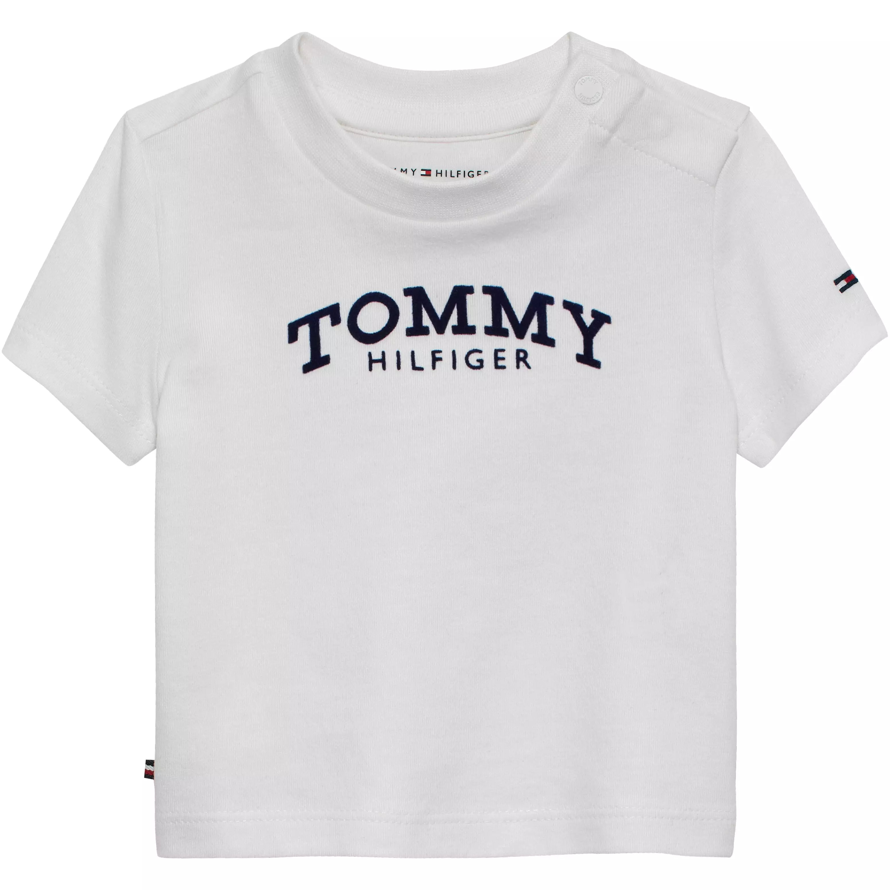 T-shirt TOMMY HILFIGER bianca in cotone, girocollo, manica corta, con logo