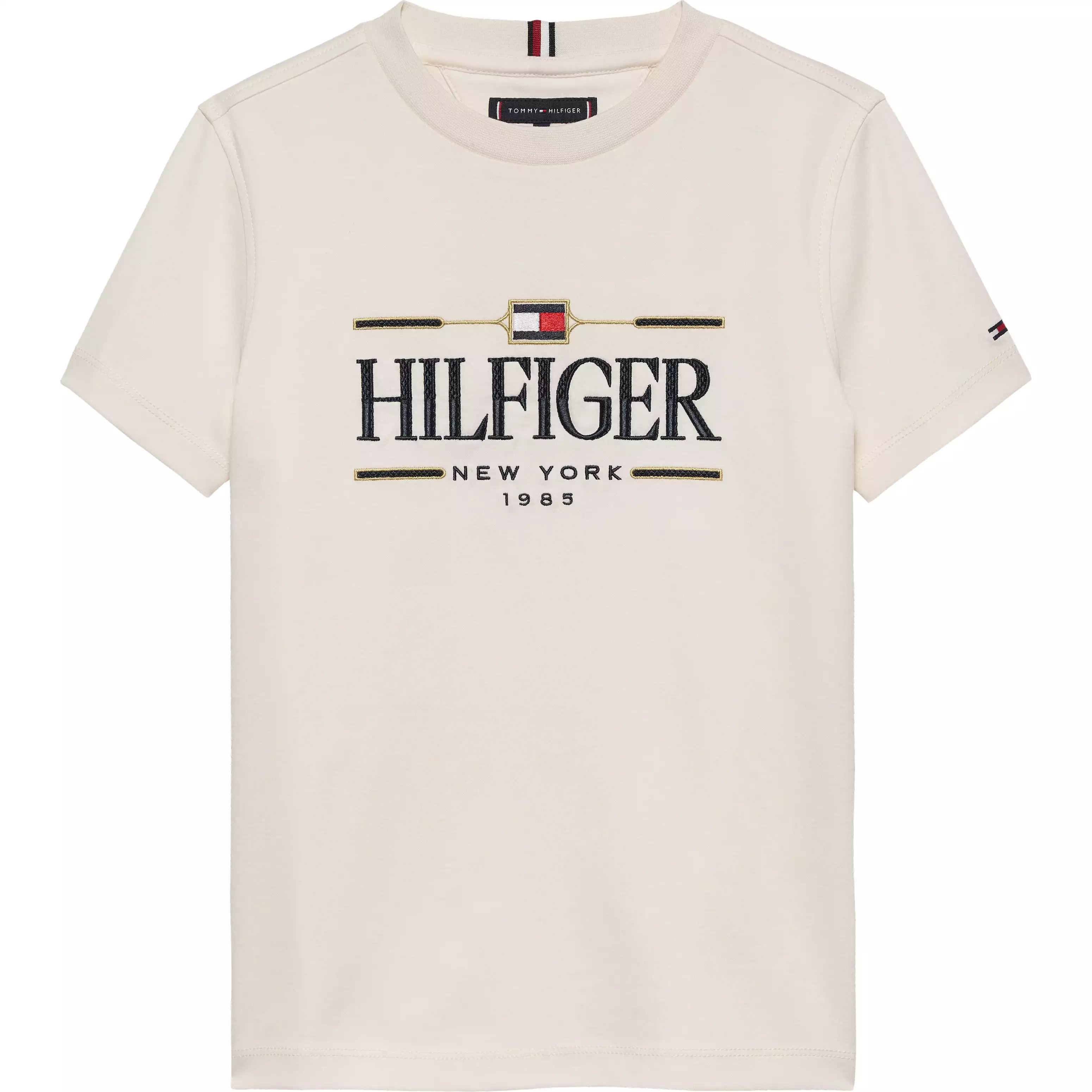 T-shirt TOMMY HILFIGER bianca a girocollo, manica corta e logo