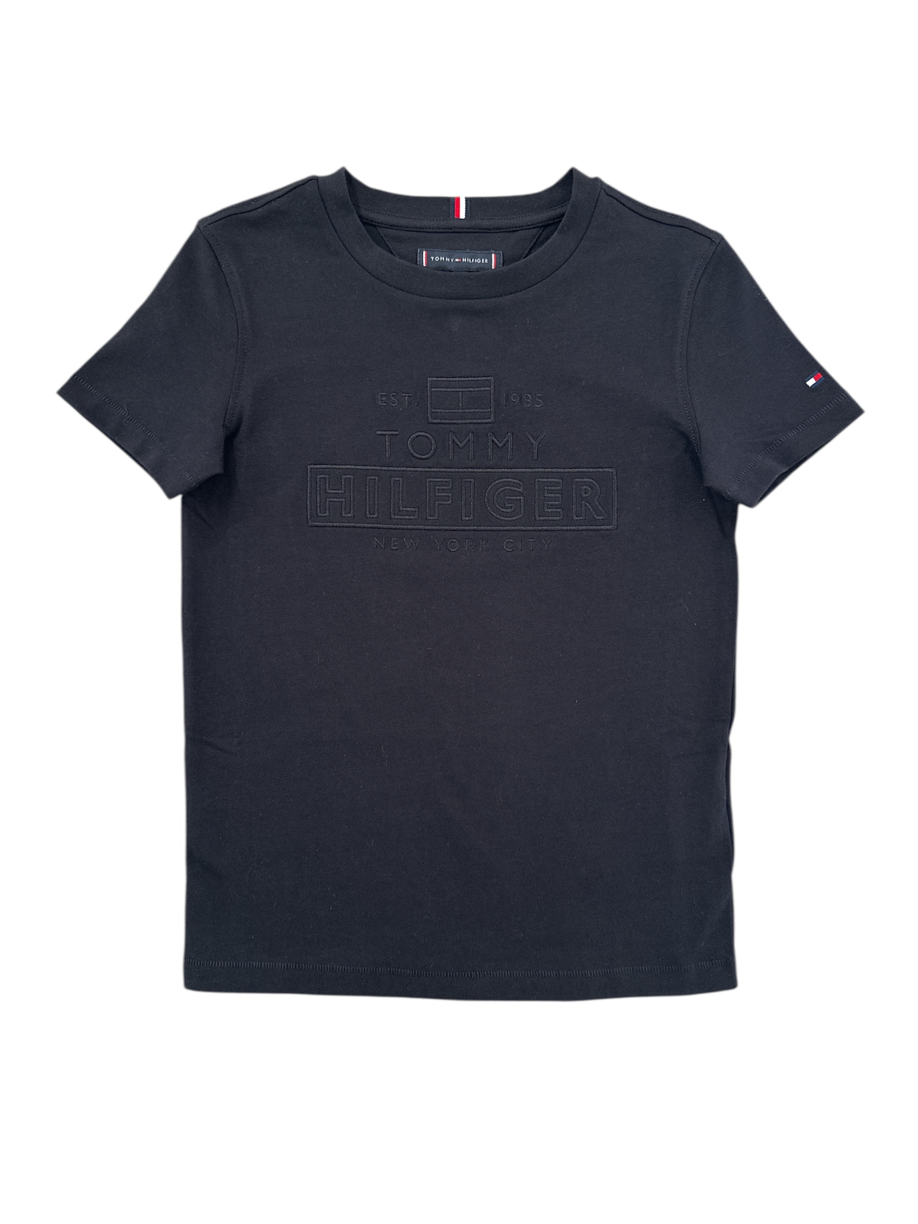 T-shirt TOMMY HILFIGER nera in cotone, manica corta, logo tono su tono
