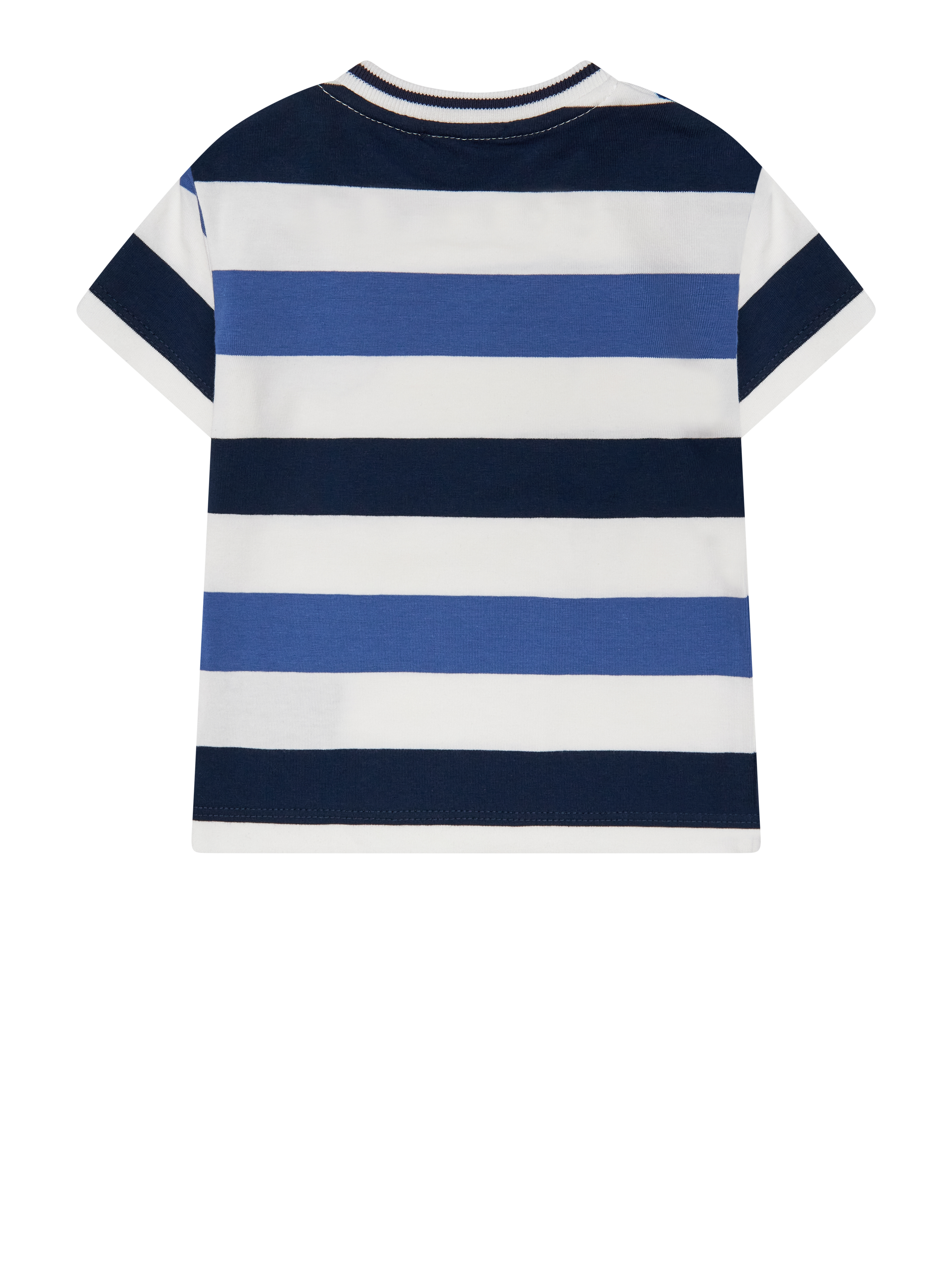 Completo TRUSSARDI composto da t-shirt a girocollo, manica corta a righe con logo. Bermuda in tuta con elastico in vita e logo