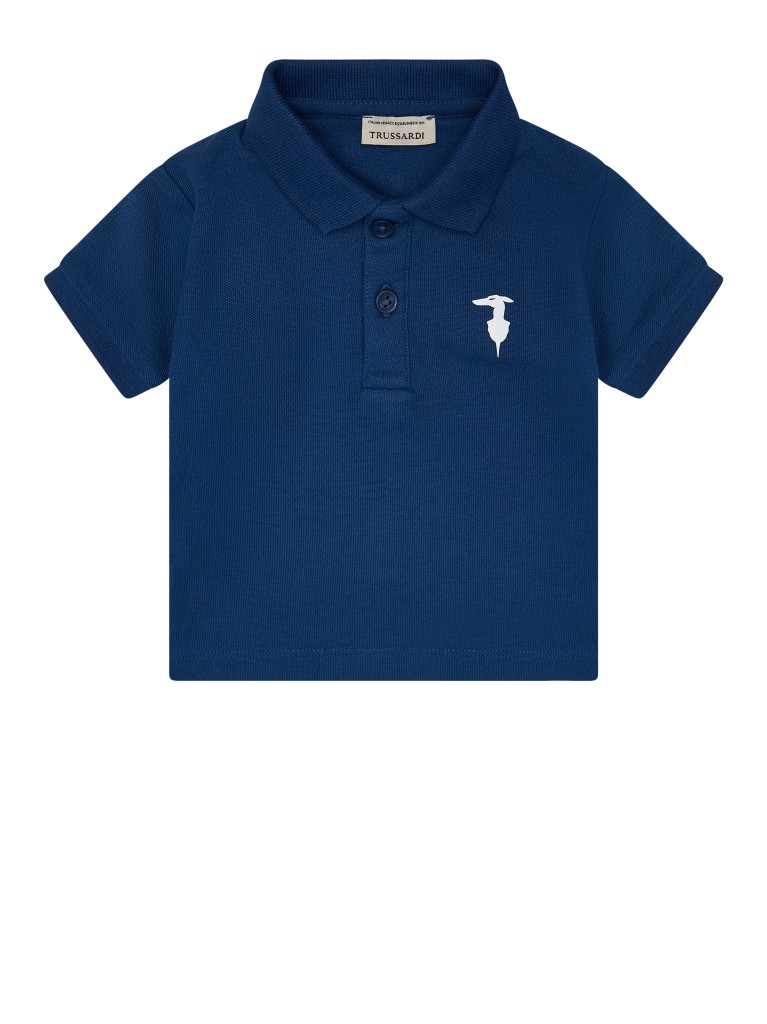 Polo TRUSSARDI in cotone nel colore bluette e logo bianco a vista.